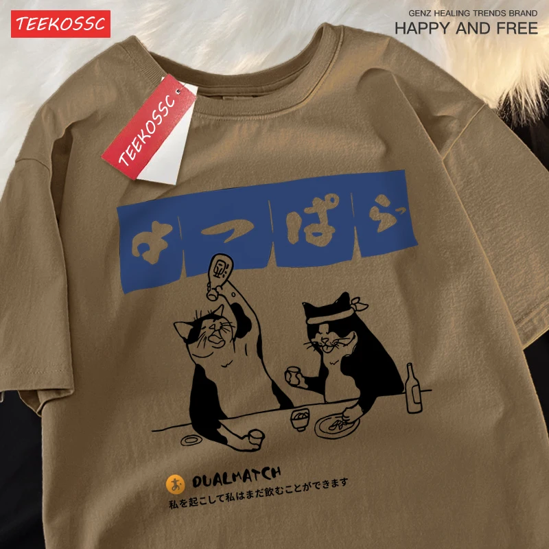 Color: SKY BLUE, Size: S - Harajuku Japanese Cat Drinking Tops Mens Fashion O-Neck T-Shirt Street Summer Oversized Clothing Hip Hop Sweat Cotton Tshirts