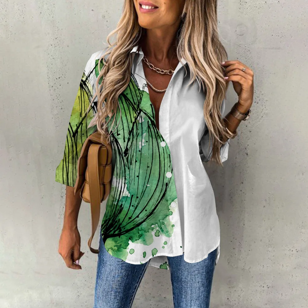 Color: SKY BLUE, Size: S - Ladies Long Sleeved Shirt Vacation Style Coconut Tree 3D Digital Printed Button Up Collar Loose Casual Ladies Blouse 2024 Autumn