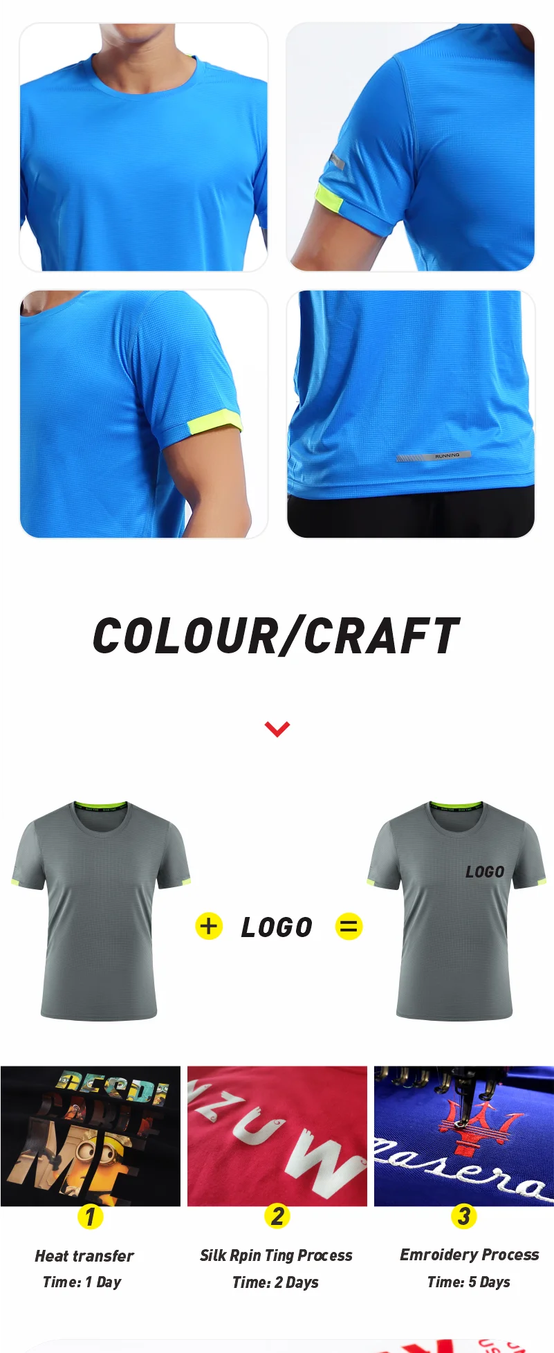 Color: SKY BLUE, Size: S, Ships From: CN - Men's t-shirt quick-drying sports top, custom logo running T-shirt, trainer fitness shirt