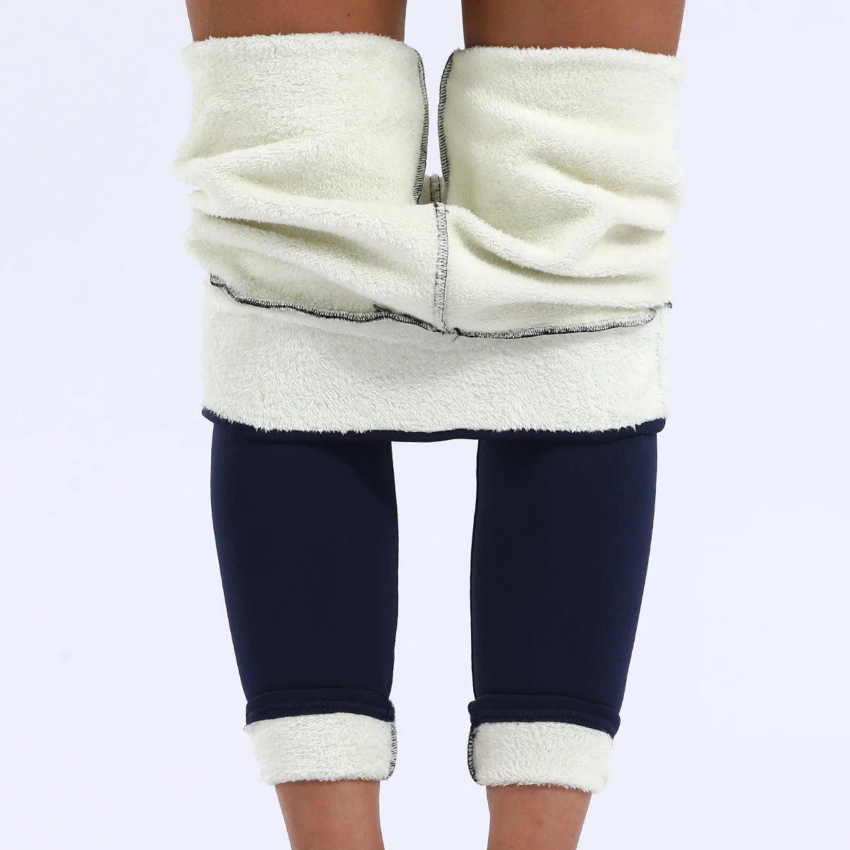 Color: SKY BLUE, Size: XXL - Super Warm Winter Leatherlabel Leggings Of Women Skinny Stretch High Waist Prevent Cold Leggings Casual Classic Pants