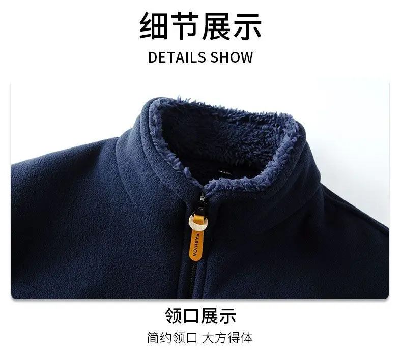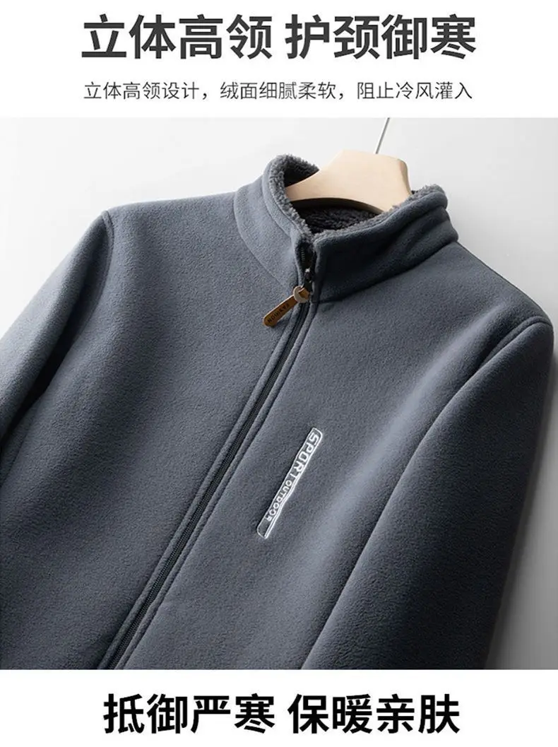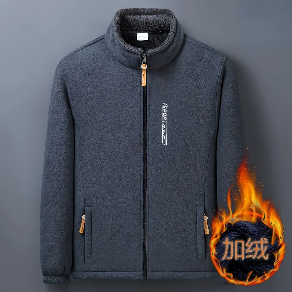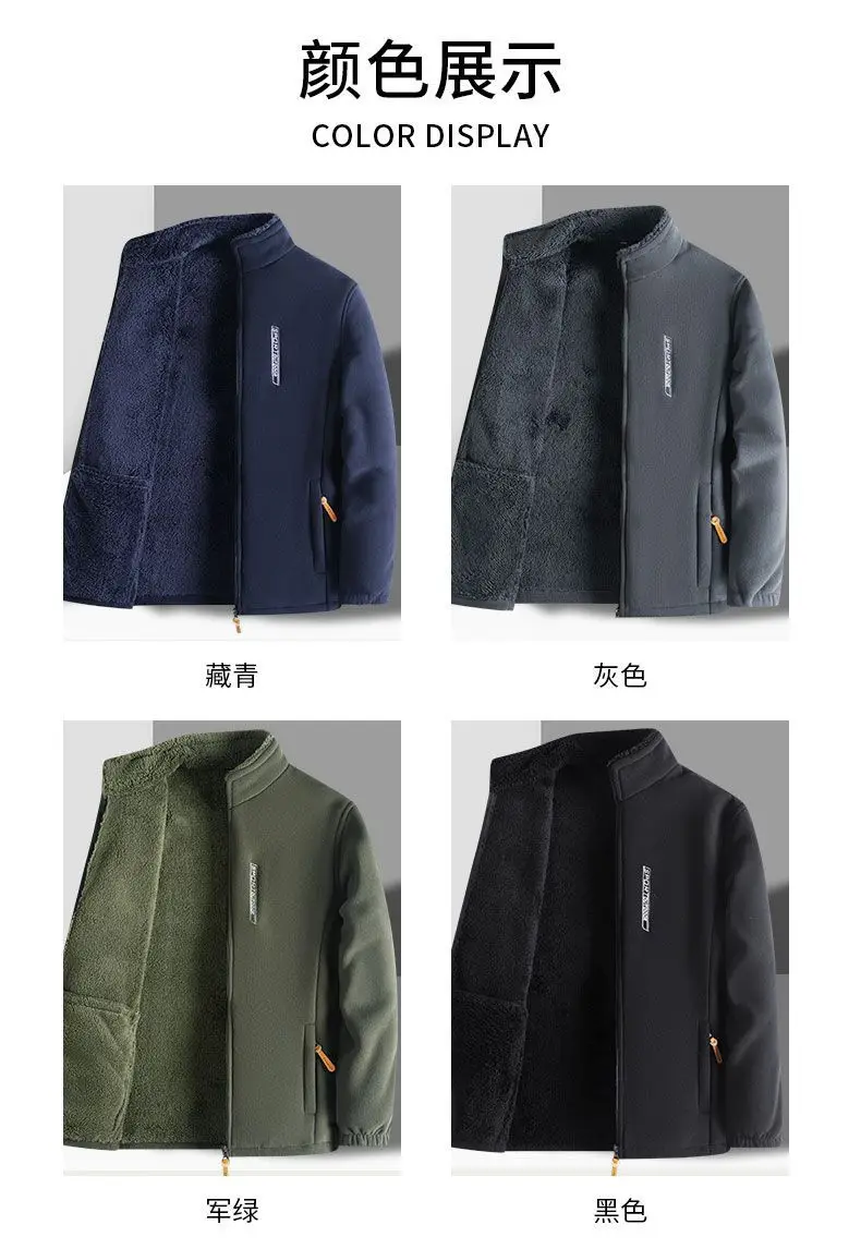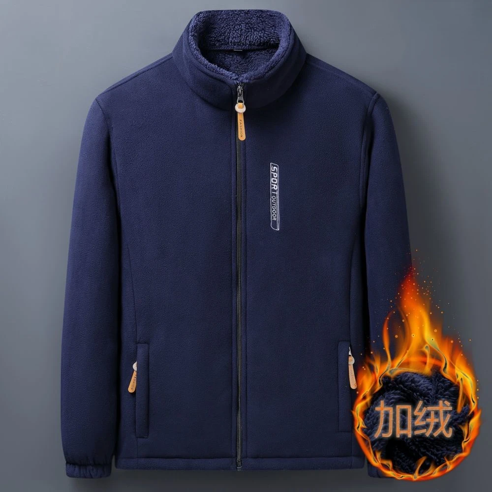 Color: SKY BLUE, Size: XXL - Winter Men Outdoor Fleece Jacket Casual Polar Fleece Cold-Proof Thickened Coat Lightweight Windproof Zipper Cardigan Warm Jacket