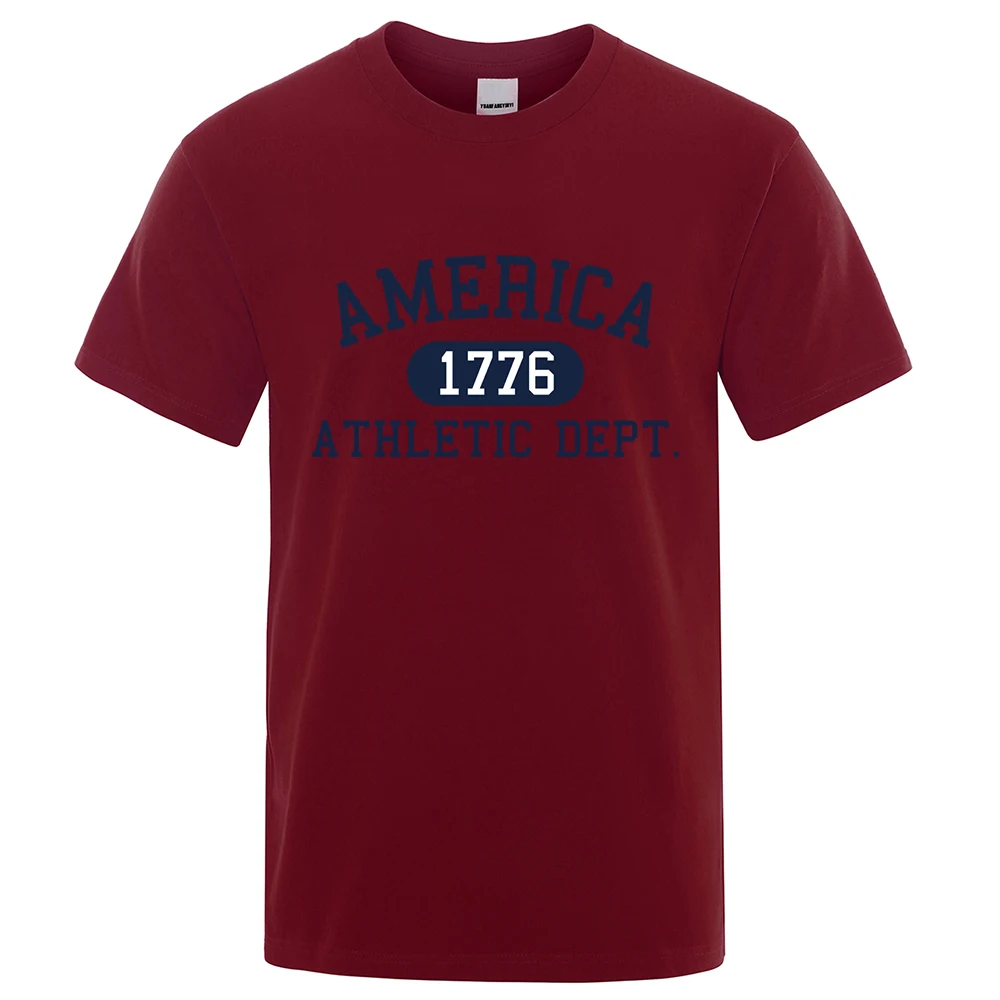 Color: SKY BLUE, Size: XXXL - America 1776 Athletic Dept Letter Tshirt Man Fashion Tee Clothes Summer Luxury T-Shirt Hip Hop Breathable Cotton Tee Clothes