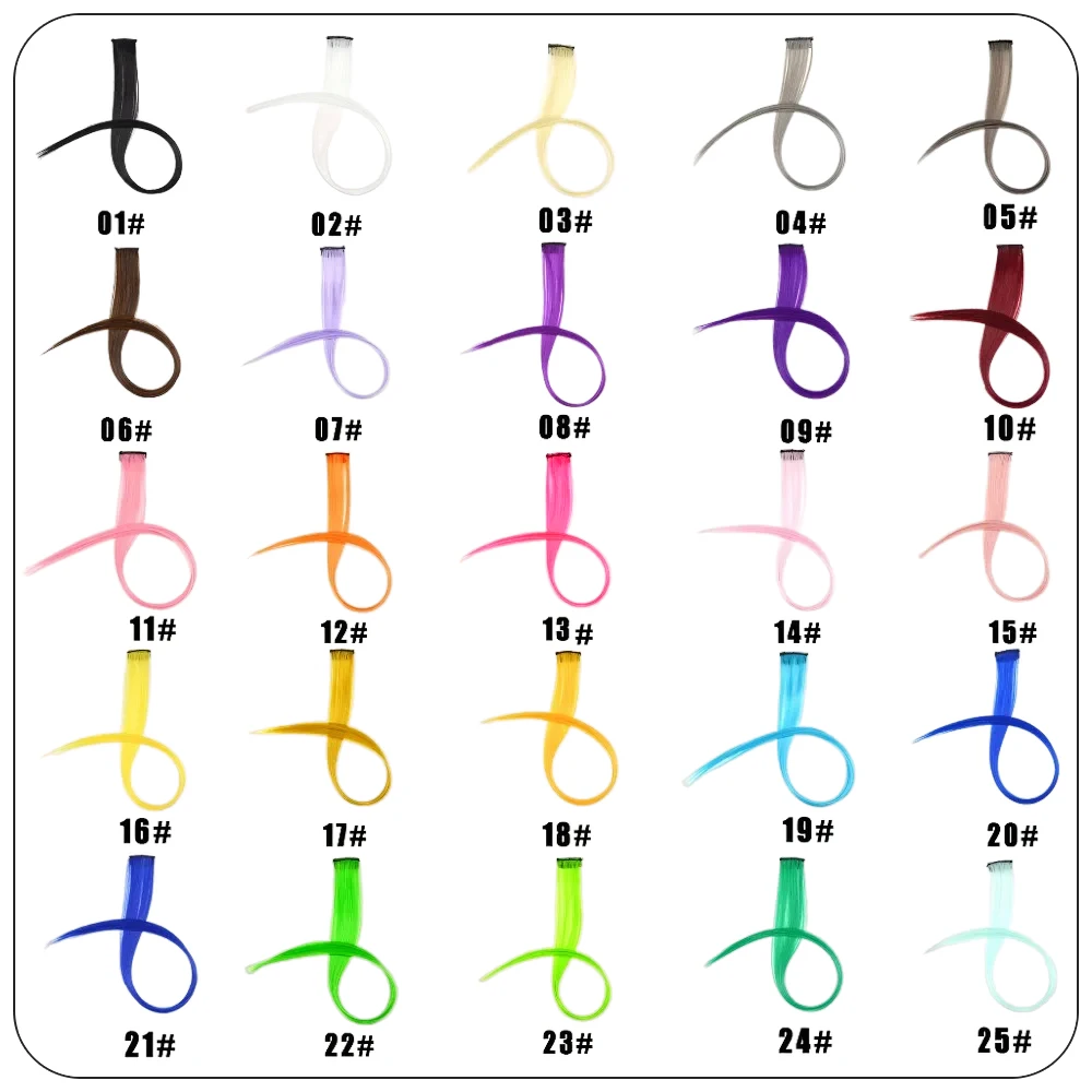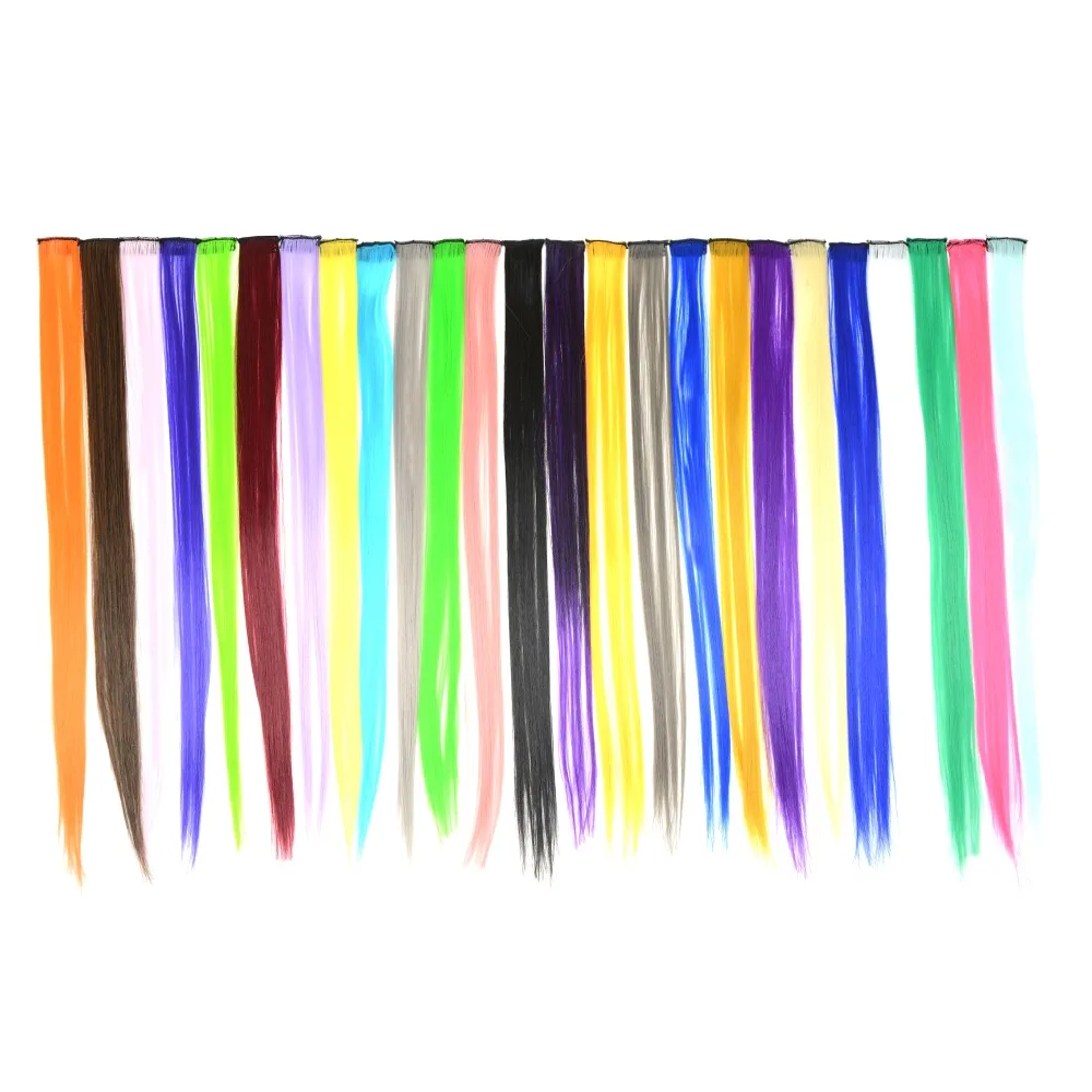 37 Colored 22" Long Straight Ombre Synthetic Hairpieces Hair Extensions Pure Clip In One Piece Color Strips Hairpiece for WomenÂ