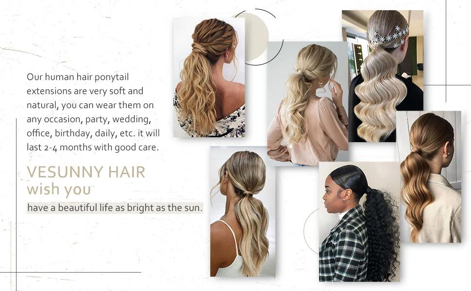 1. Product Name: Vesunny Ponytail Human Hair Extensions Wrap Around Blonde Magic Tape with Comb