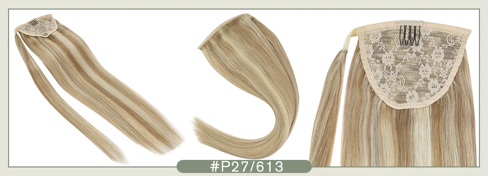 Wash in the warm water Ponytail Extensions Wrap Around Magic Tape 100% Human Hair Highlighted Color Ash Blonde mix Bleach Blonde #18/613