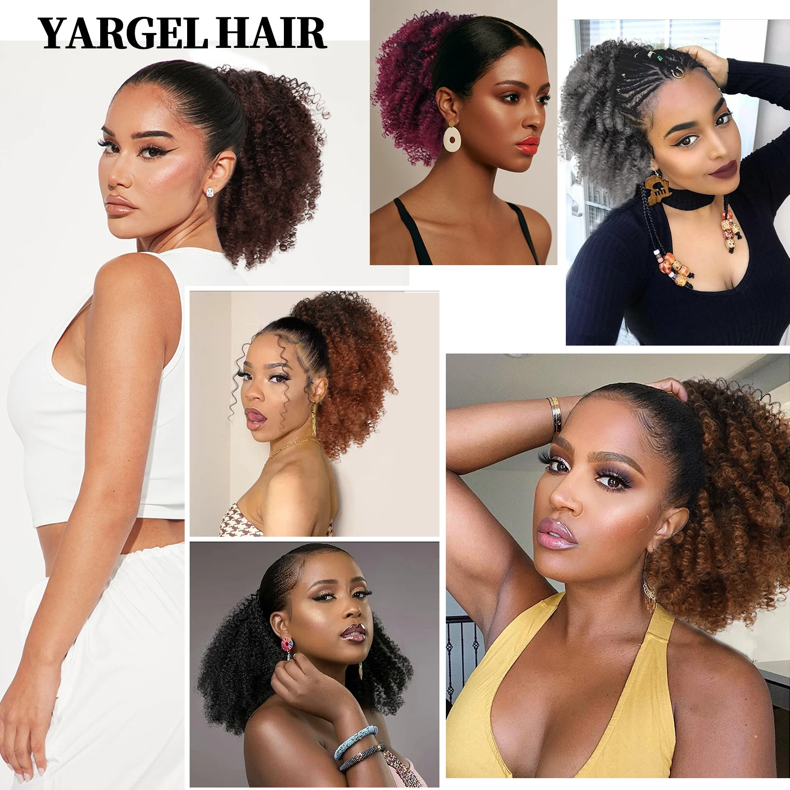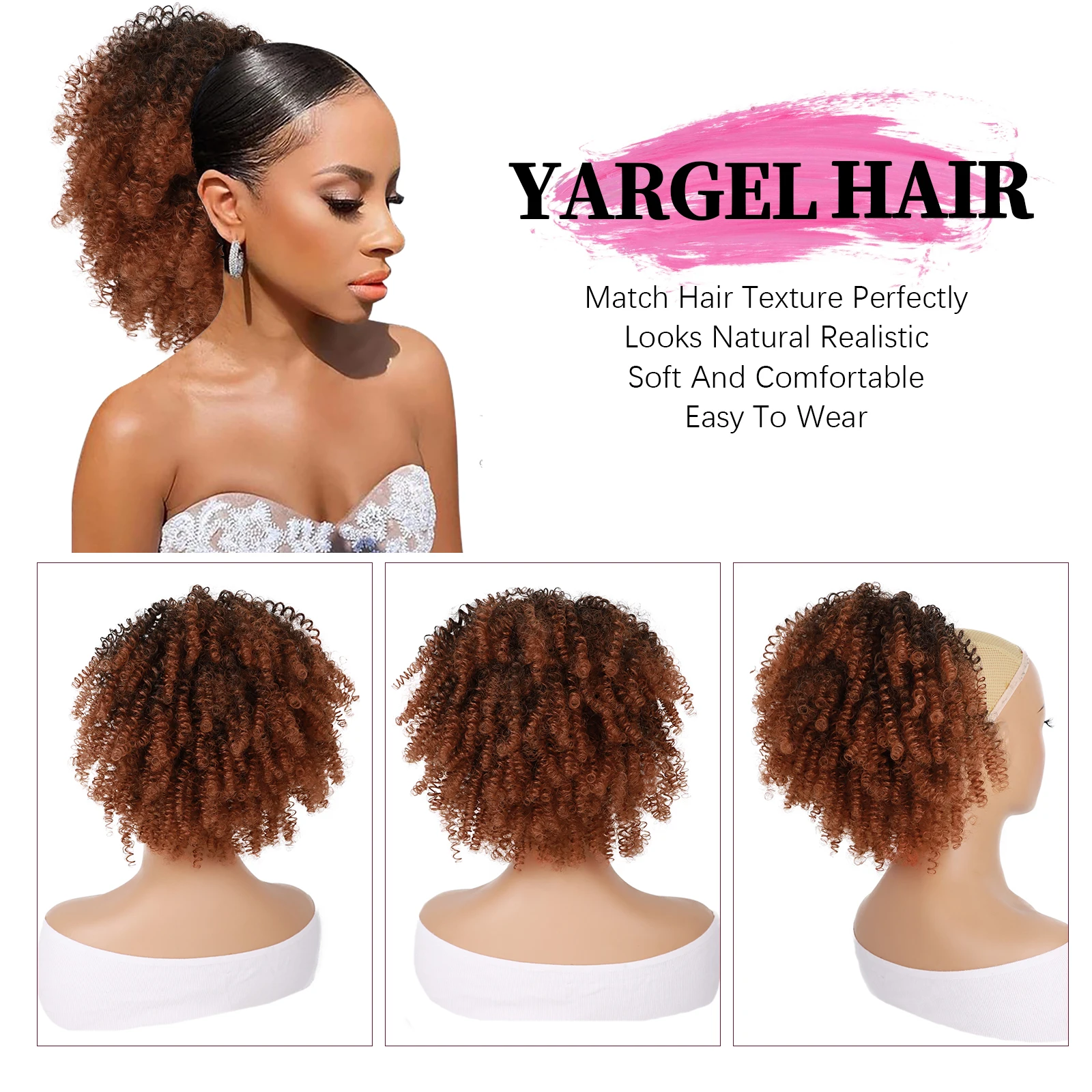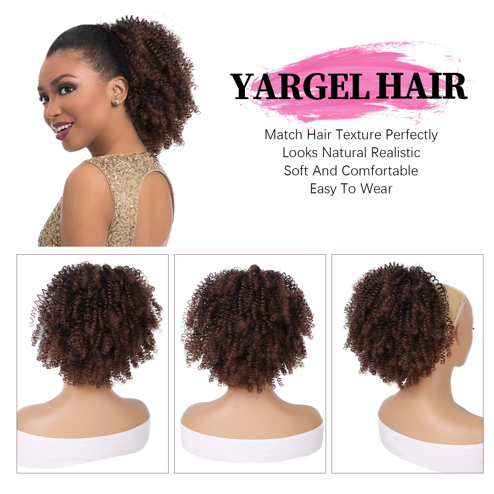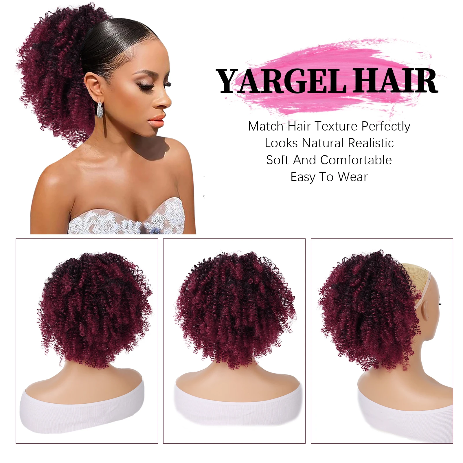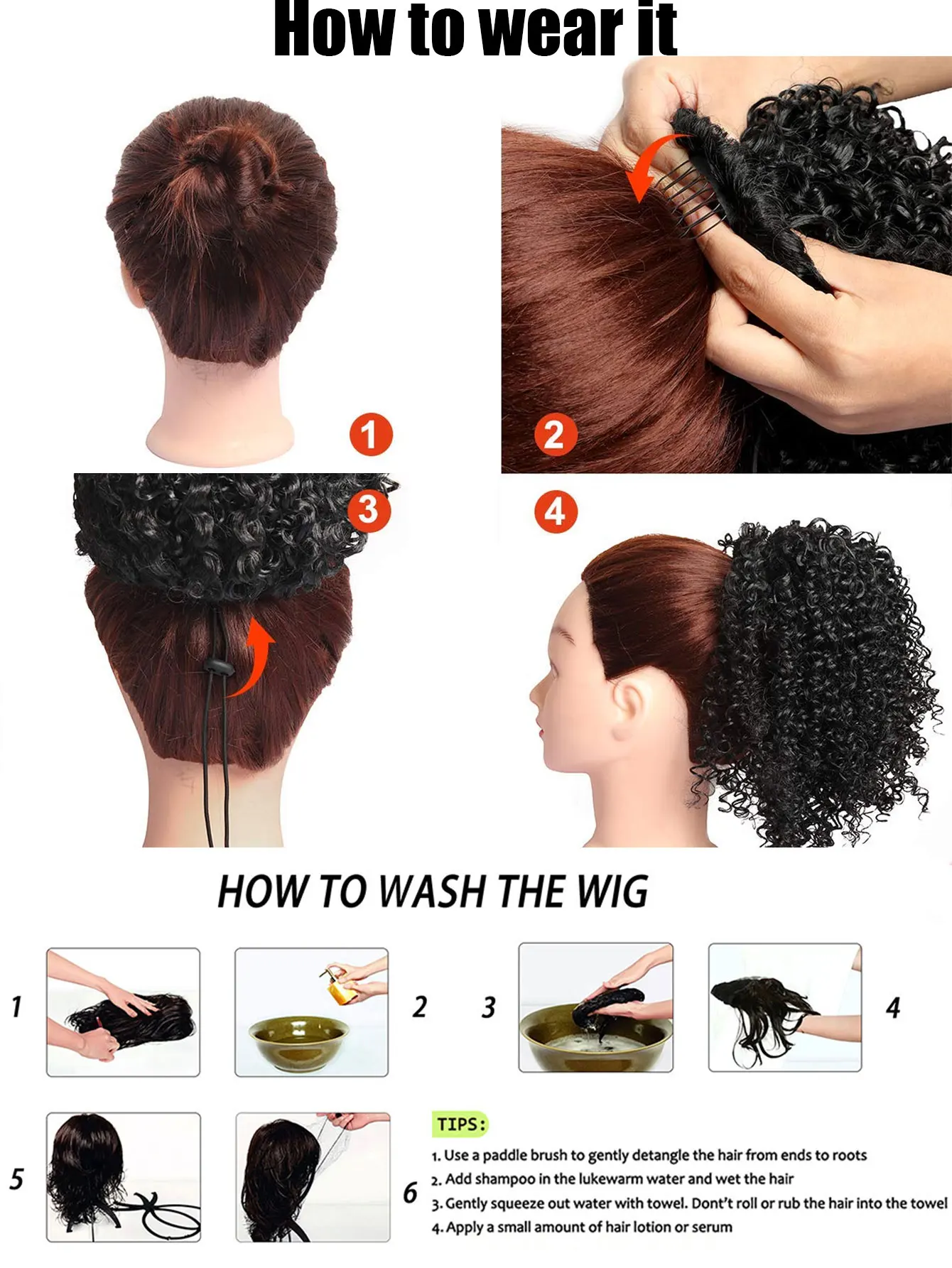 Color: T1B/350 - Afro Puff kinky curly Drawstring Ponytail Bun Extension for Black Women Synthetic Short Afro Kinkys Curly Afro Hairpieces