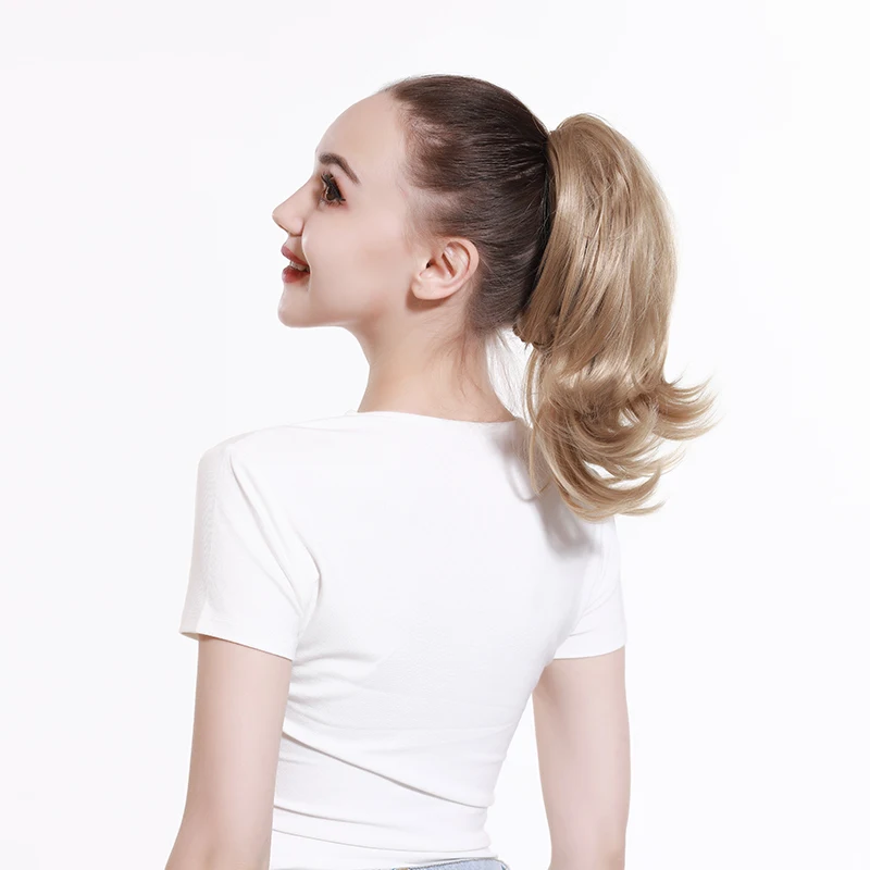 Color: T1B/613, Stretched Length: 12inches - Synthetic Claw Clip In Ponytail Hair Extensions Hairpiece Horse Tail Fake Hair Wavy Blonde False Pigtail With Elastic Band