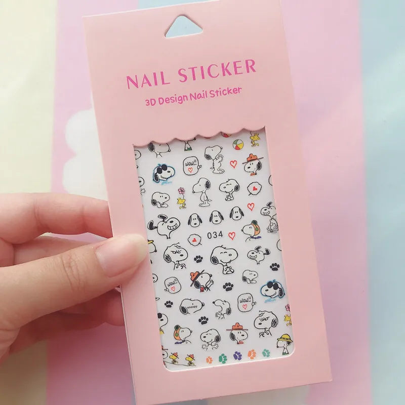 Color: Tan/Khaki - 1PCS Hello Kitty 3D Nail Stickers Press on Nails Mickey Mouse Donald Duck Stitch Cartoon Stickers Nail Art Decoration