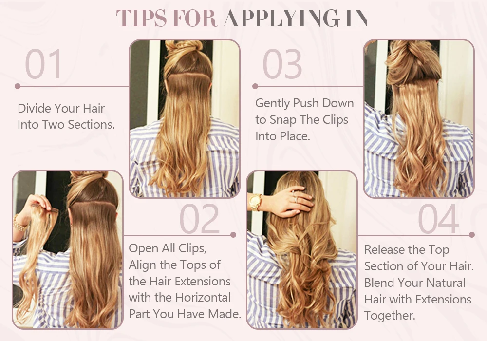 2. Open all clips, align the tops of the hair extensions with the horizontal part you have made
