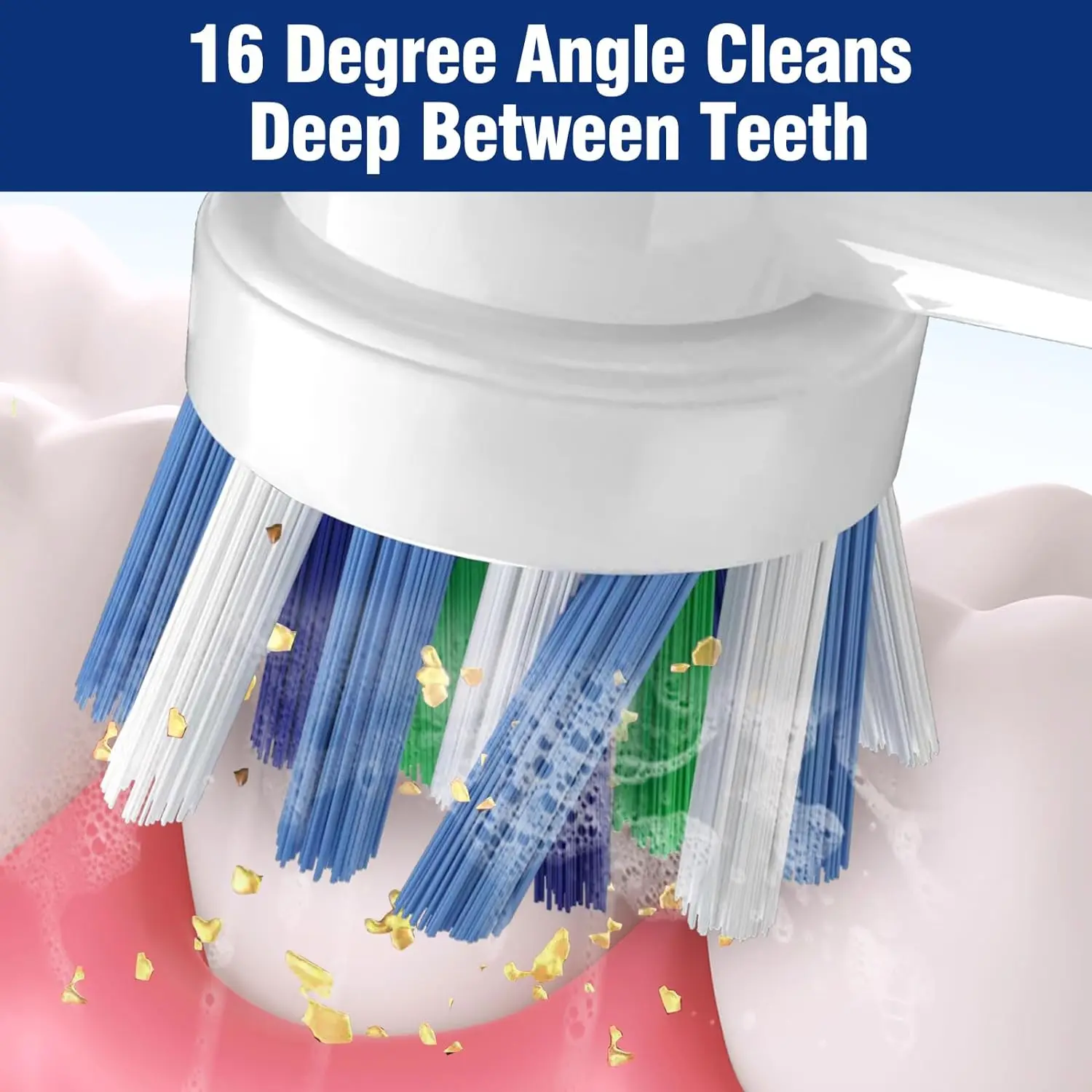 DEEP CLEANING- Precisely angled electric toothbrush bristles are set at 16 degrees to reach deep between teeth and remove more plaque vs a regular manual action toothbrushes.