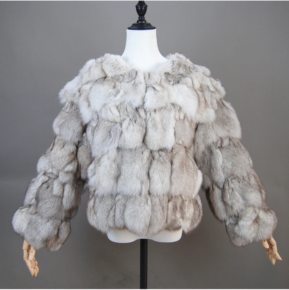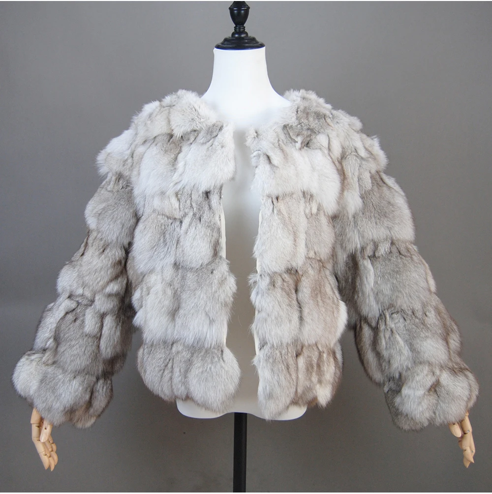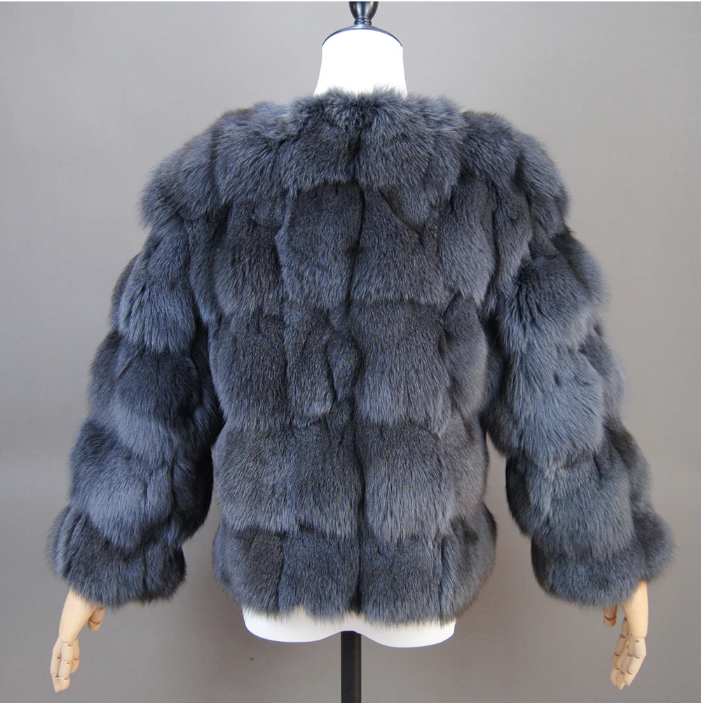 Color: Turquoise, Size: L - 2025 New Style Real Fur Coat 100% Natural Fur Jacket Female Winter Warm Leather Fox Fur Coat High Quality Fur Vest