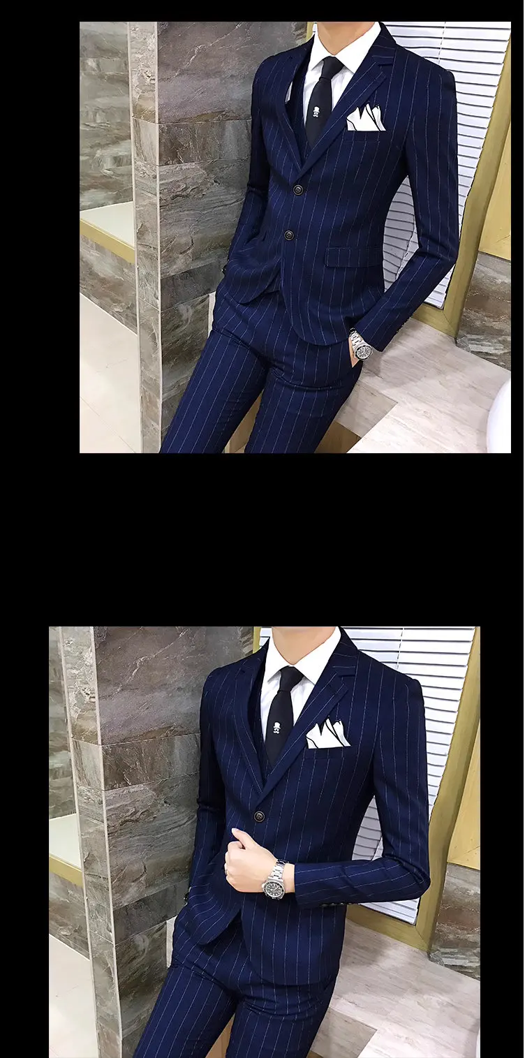 Color: Turquoise, Size: XXL - Gray Men Classic Striped/Checked Suits, Business Office 3 Piece, Asian Size Slim Fit Men Dress Jacket & Pants with Vest, S-4XL