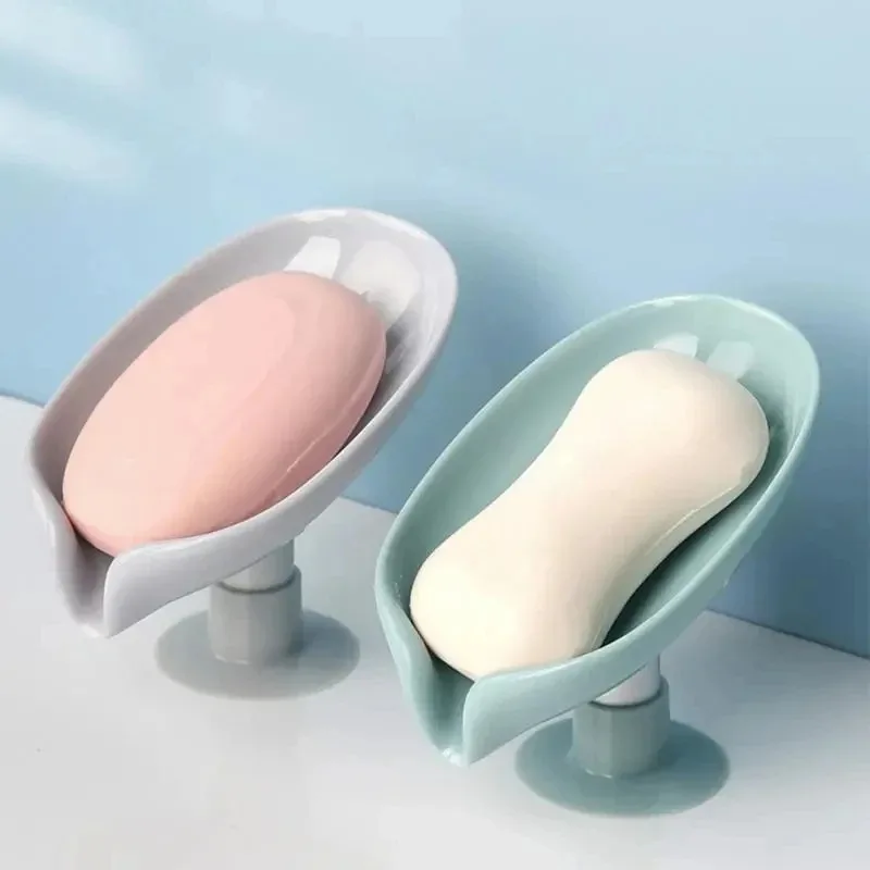 Color: VIOLET/?«?—?…° - 1-2Pcs Drain Soap Holder Bathroom Items Leaf Shape Wall Soap Dish for Bathroom Punch-free Suction Cup Standing Things the Home