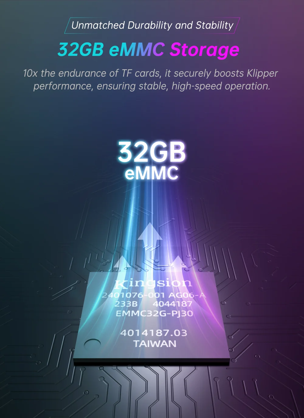 32GB eMMC Storage:Stable, Shock-Resistant Klipper Operation
