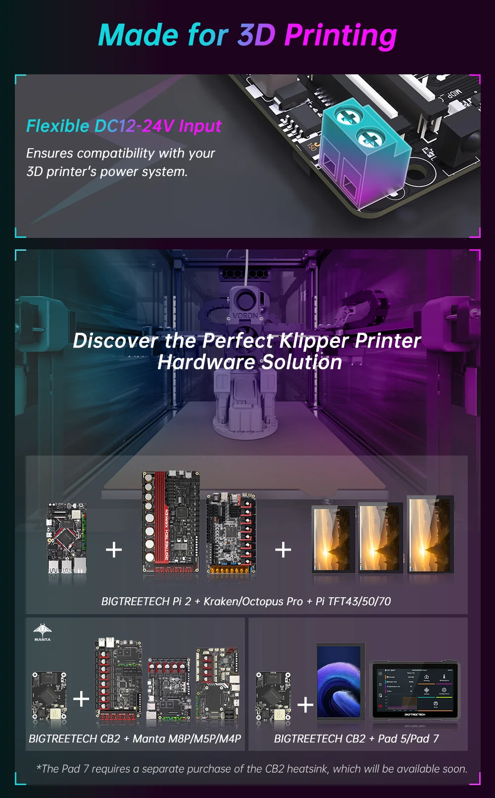 Flexible DC12-24V Input:Ensures compatibility with your 3D printer's power system.
