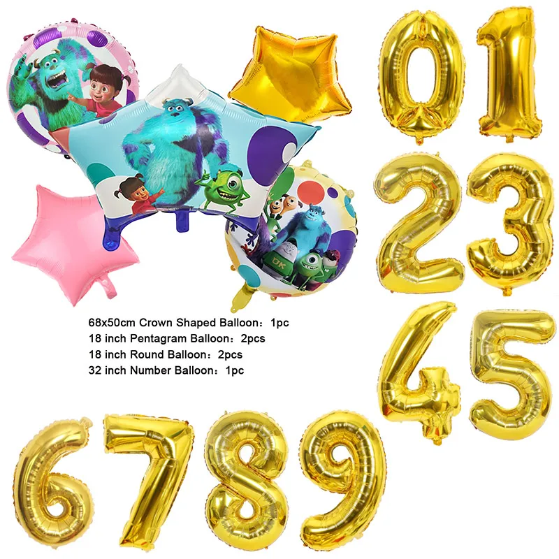 Color: VIOLET/?«?—?…°, Capacity: 1500ml - Monsters University Monsters, Inc. James P. Sullivan Theme Birthday Party Decoration Crown Shaped Balloon Set Baby Shower