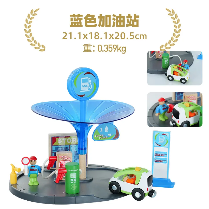Color: VIOLET/?«?—?…° - Wooden Train Tracks Railway Toys Set Parking lot apron fire station gas station rotary crane Overpass Model for Kids Toys Gifts