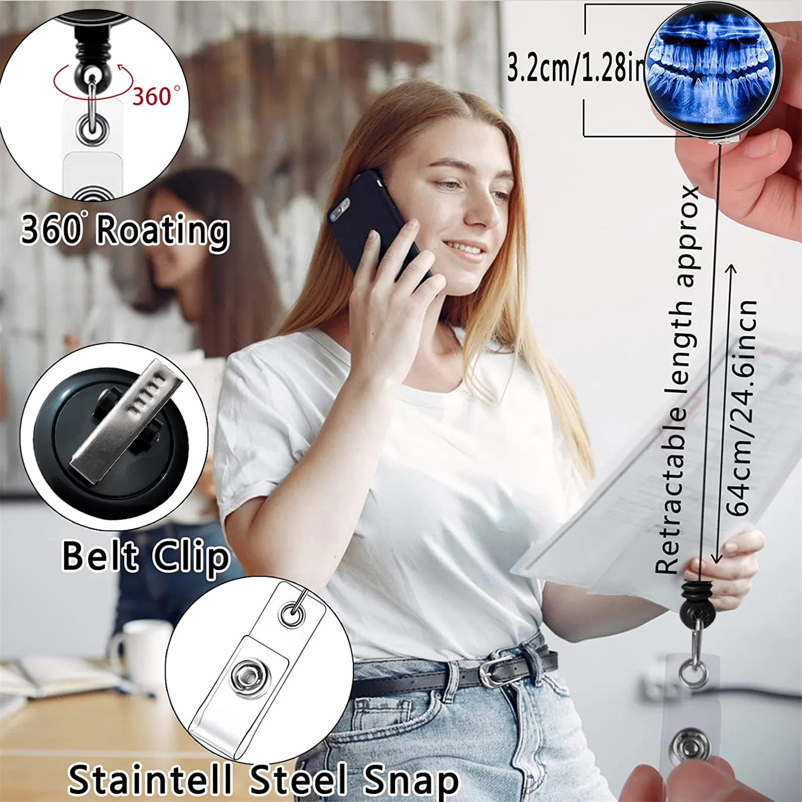 3. Product material: Our retractable badge holder reel is made of high-quality ABS material. The epoxy finish is smooth and just needs to be wiped clean.
