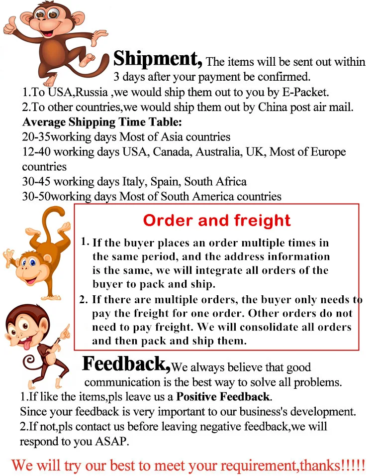 6. In the case of the same time period and the same address information, the buyer only needs to pay the freight for one order. We will integrate all the orders of this buyer, and then pack and ship.