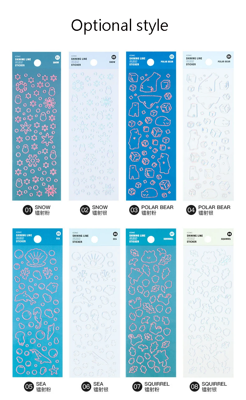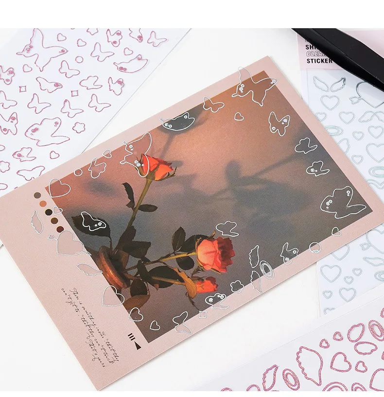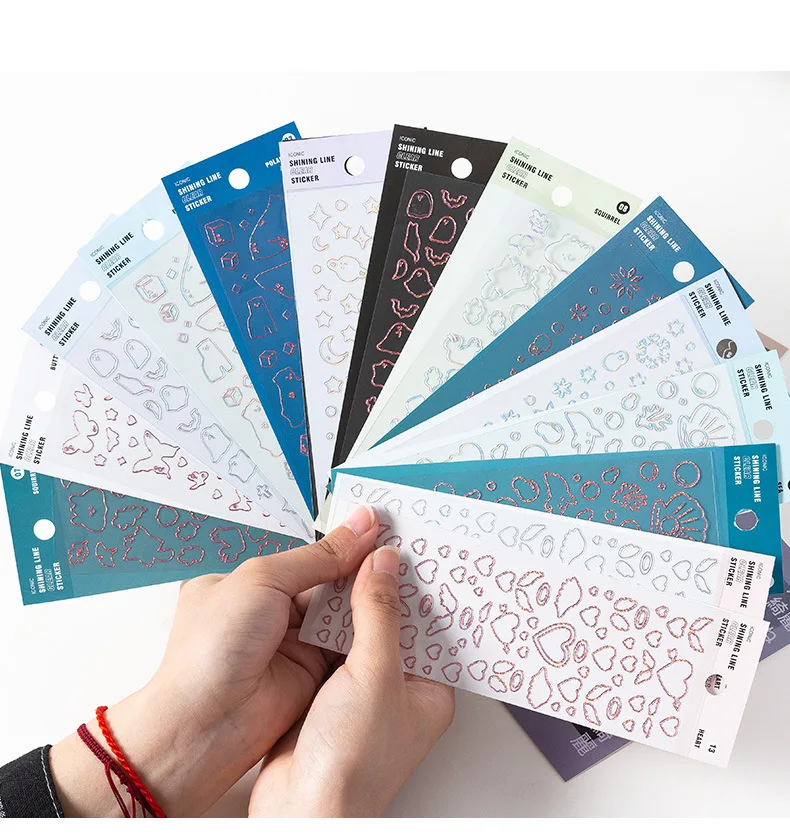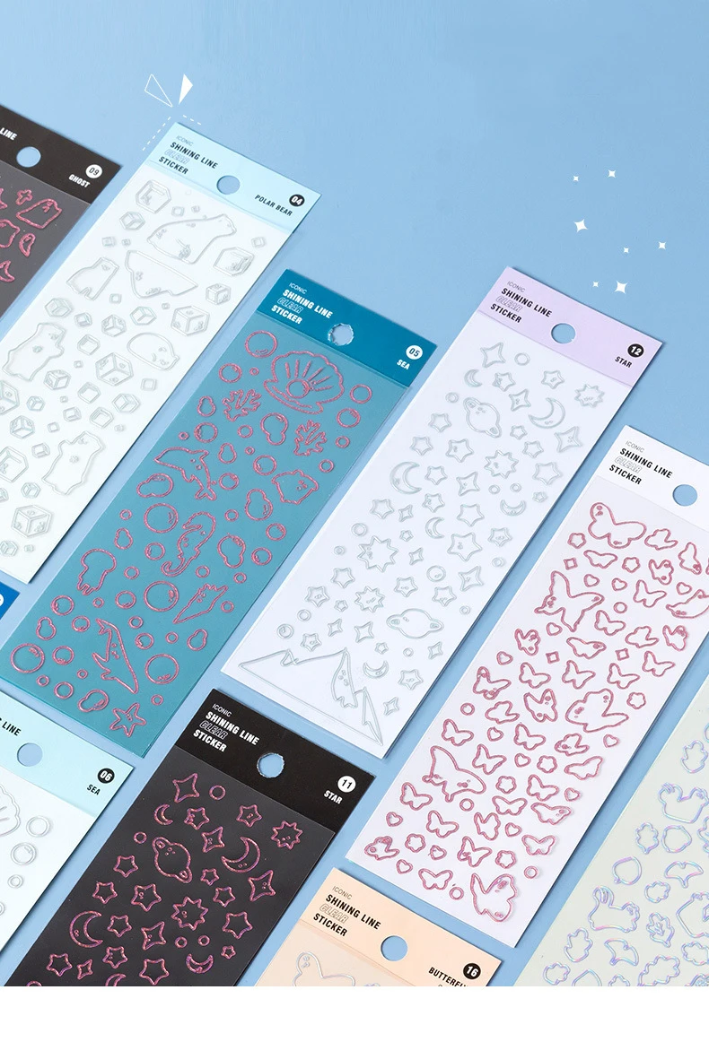Color: WHITE - 1 Sheet Transparent Flash Laser Line Stickers Decorative Stationery DIY Scrapbooking Material Pvc Stickers Cute Album Stick