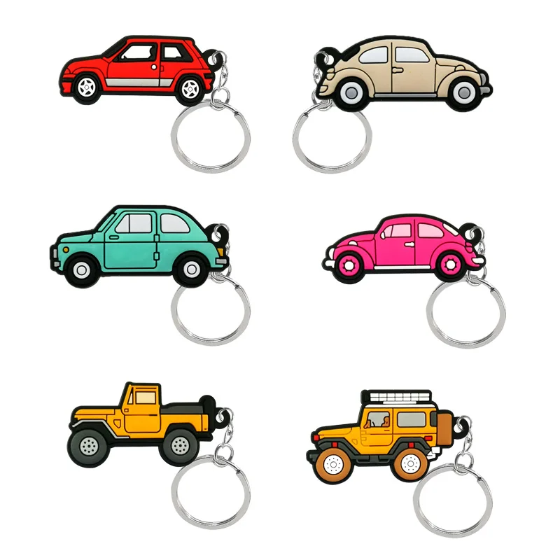 Color: WHITE - 1PCS PVC Key Ring 6 Colors of Car Shape Keychain charms Colorful Key Chain Key Holder Fit Little Boy Gift Kids Toys