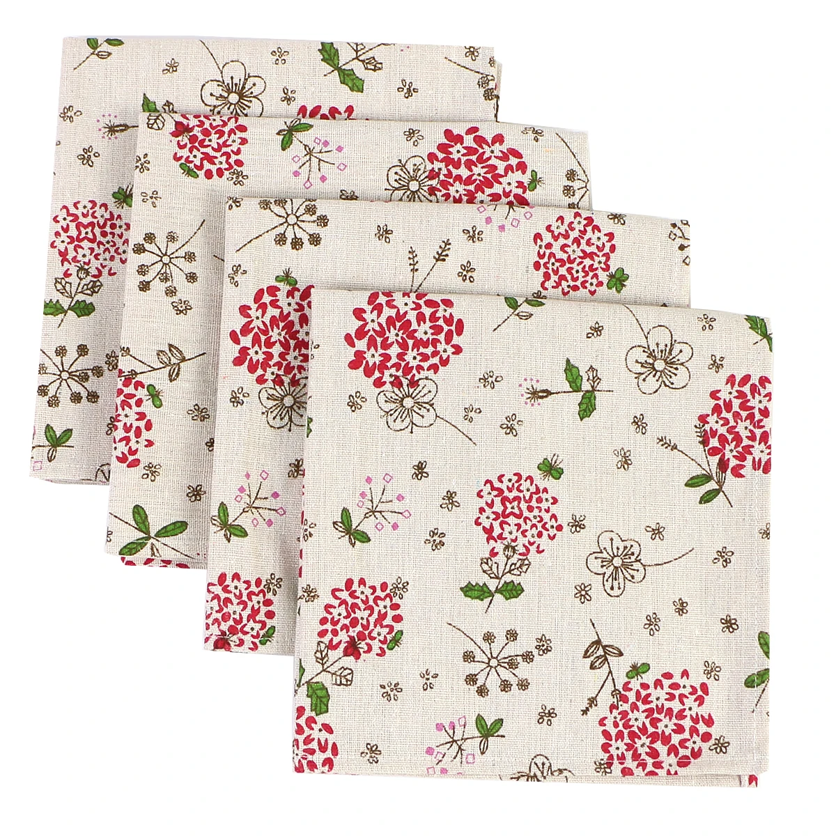 Color: WHITE - 4PCS 40x40CM Floral Printed Cloth Napkins Japanese Style Dinner Dish Towel Wedding Restaurant Bar Table Mat serviette de table