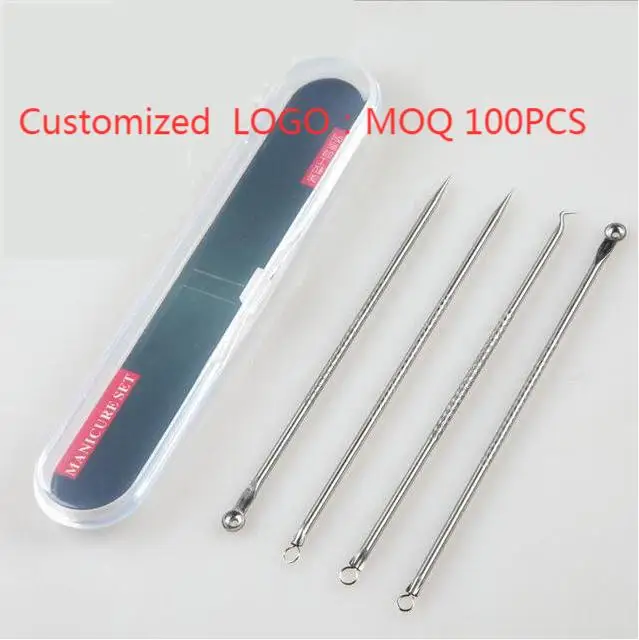 4PCS Stainless Steel Blackhead Needle Kit Acne Extractor Tool Set Fat Granule Removal Kit with Case for Whiteheads comedones