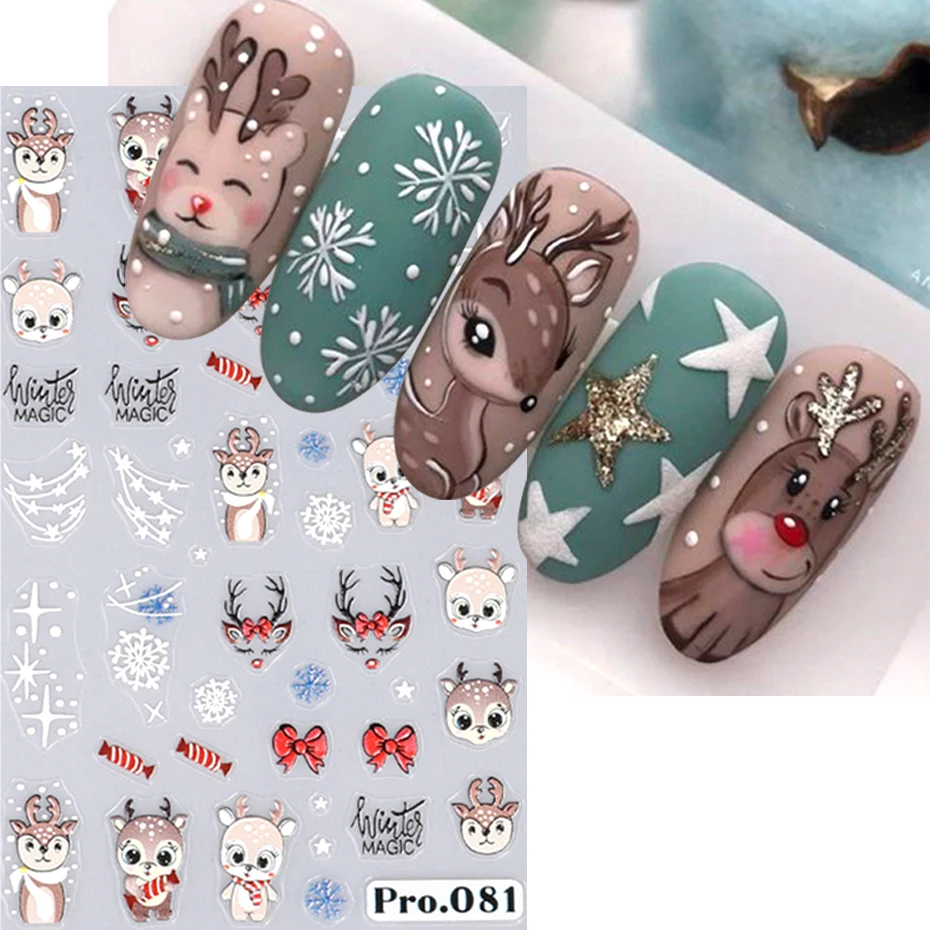 5D Embossed Elk Nail Art Sticker Cute Christmas Winter Santa Claus Snowflake Gingerbread Man Engraved Slider Manicure Decoration