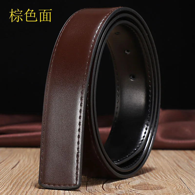 Color: WHITE, Belt Length: 115CM, Ships From: CHINA - 2.8cm 3.0cm 3.3cm 3.5cm 3.8cm Wide Double-sided Cow Reversible Leather With Holes No Buckle Belt Without Buckle High Quality