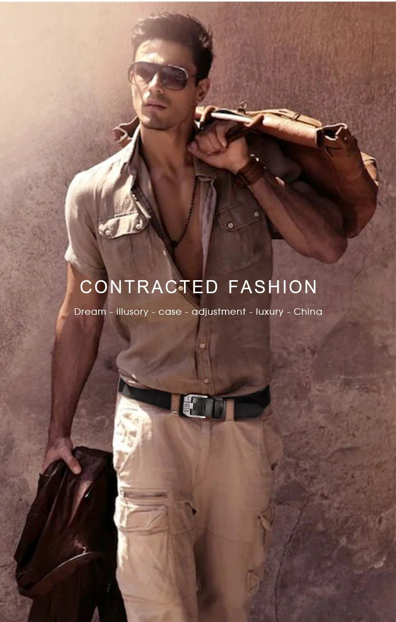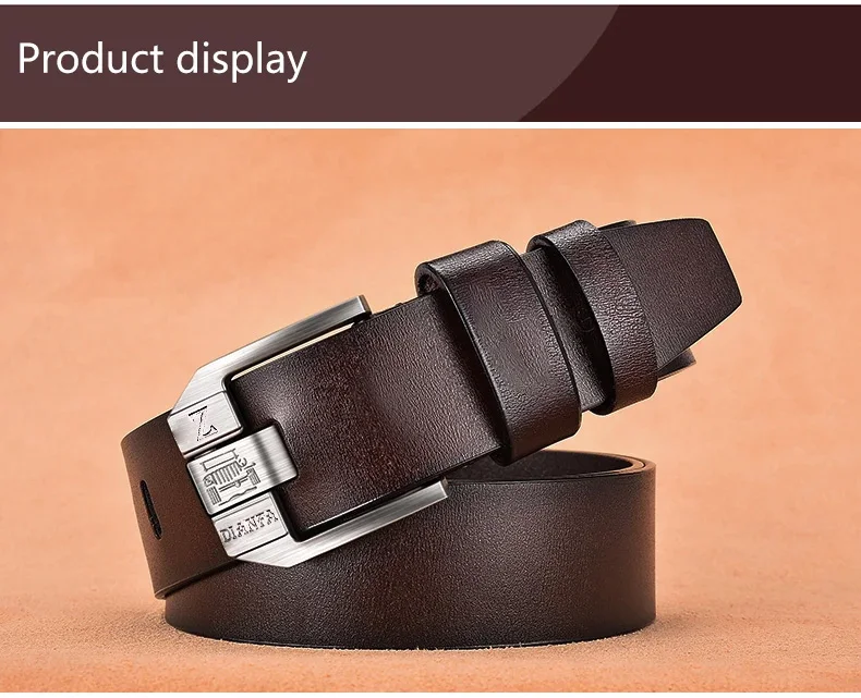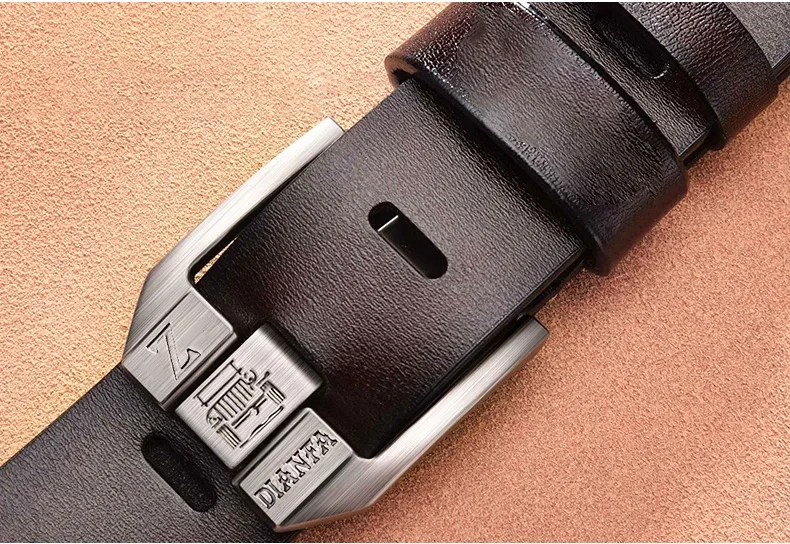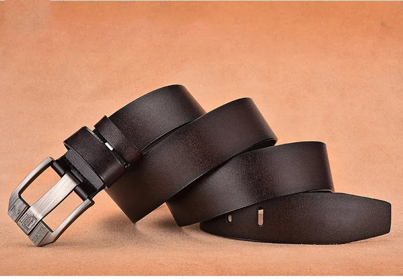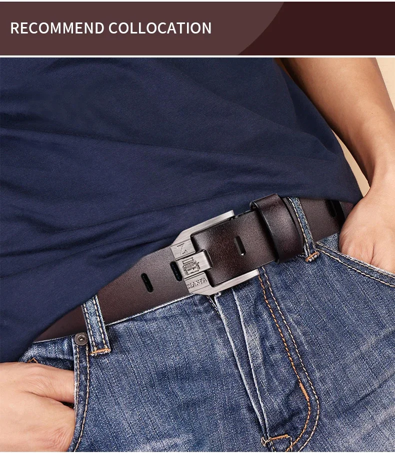Color: WHITE, Belt Length: 120cm - 130CM Leather Cowhide Men's Belt Fashion Metal Alloy Pin Buckle Adult Luxury Brand Jeans Business Casual Waist Male Strap Brand