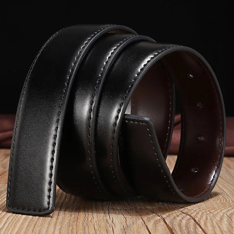 Color: WHITE, Belt Length: 125cm, Ships From: CHINA - 2.8cm 3.0cm 3.3cm 3.5cm 3.8cm Wide Double-sided Cow Reversible Leather With Holes No Buckle Belt Without Buckle High Quality