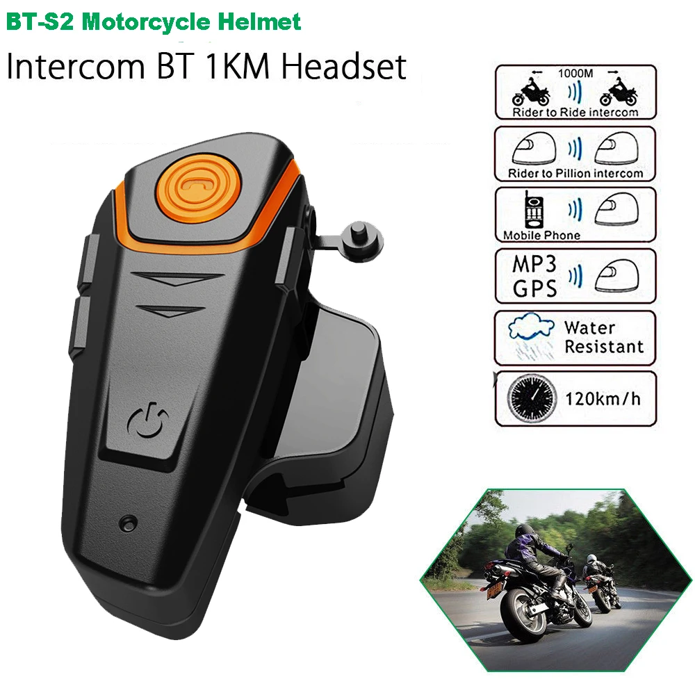 Color: WHITE - BT-S2NS Motorcycle Helmet BT Headset Intercom Moto Waterproof Multi BT Interphone 1000M Interfones MP3 FM Intercomunicador