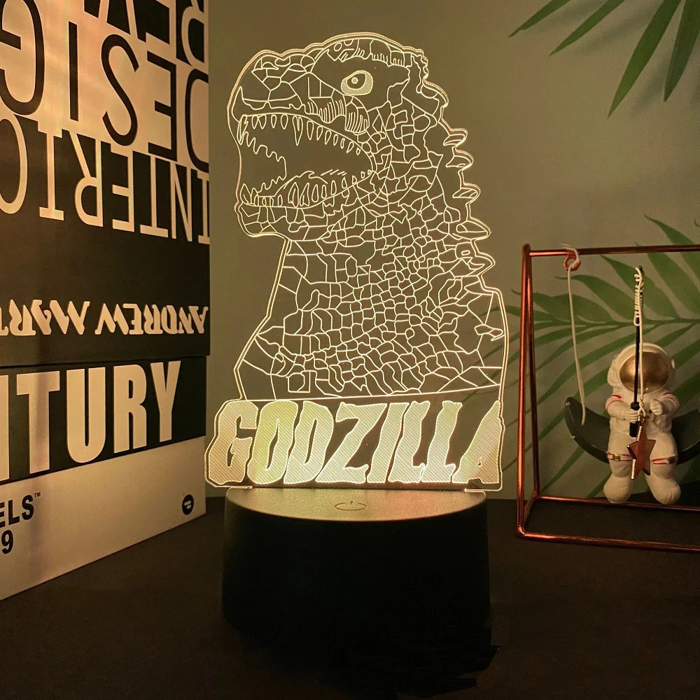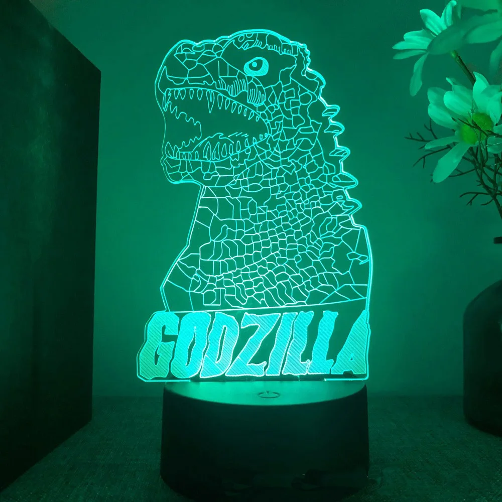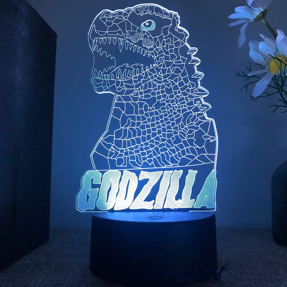 Color: WHITE, Emitting Color: BROWN - Hot Toys Godzilla 3D Acrylic Night Light 16 Colors Dimmable USB Desk Lamp Birthday Gift for Boys and Girls Christmas Gift