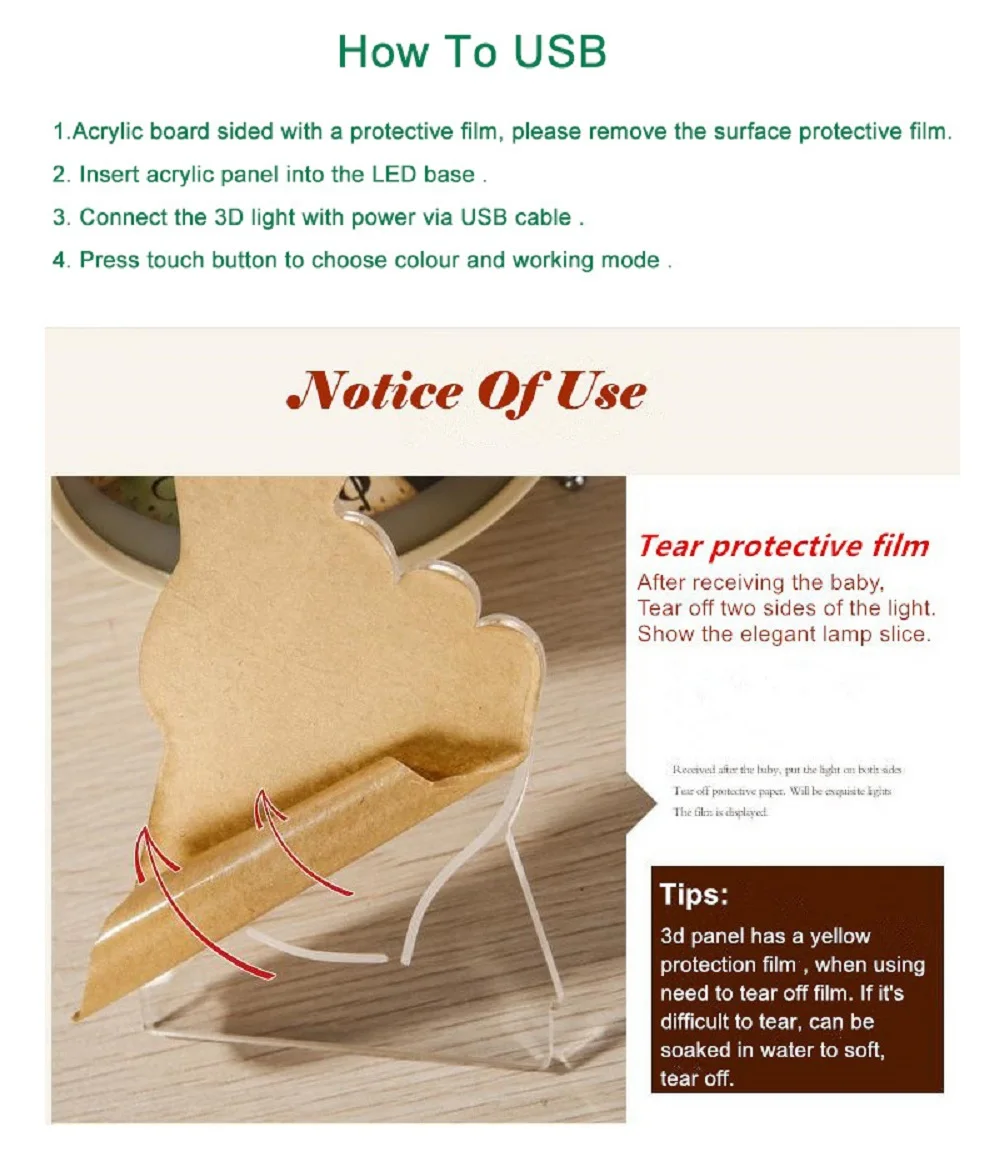 ☺ [Best Gift for Kids] Surprise birthday gift for baby, boy or girl. Great holiday gift for kids teenagers or friends, they absolutely love the illusion of night light. This 3D decorative night light can be used for home, bedroom, nursery, kids room, living room, bar, store, cafe, restaurant, party and so on.