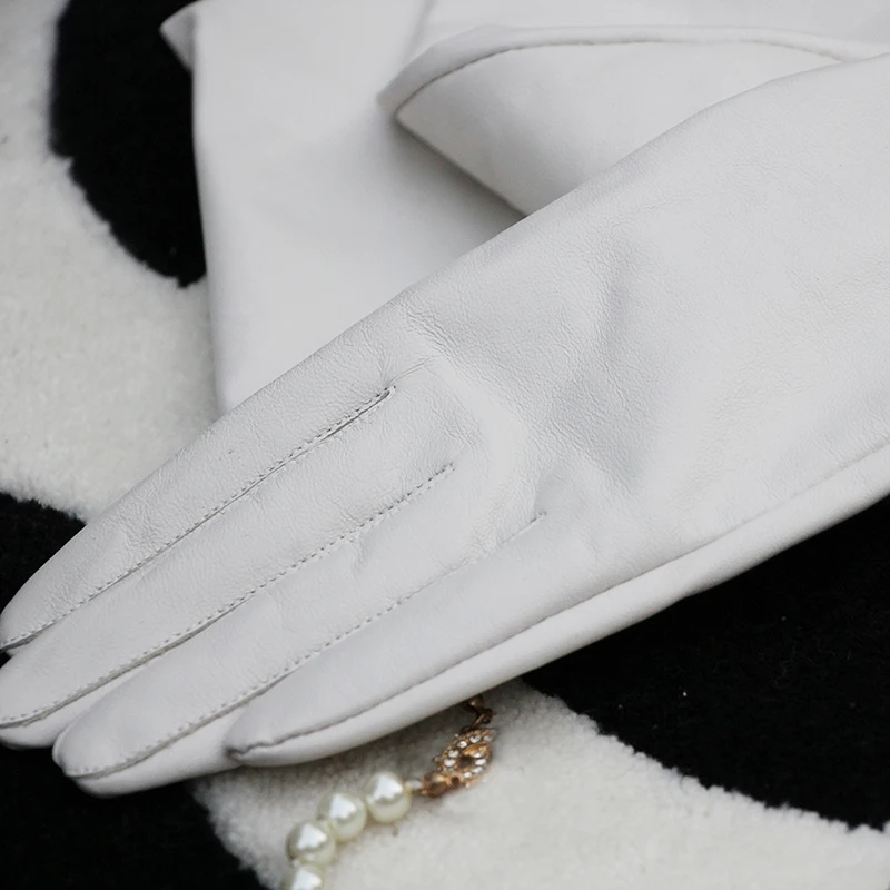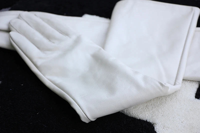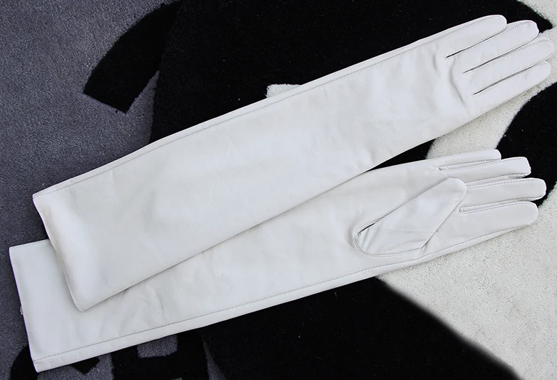 Color: WHITE, Gloves Size: 7 - 50cm New Genuine Leather White Women's High Grade Party Mittens Sheepskin Lady Winter Velvet long Gloves Creamy Ivory Snow White