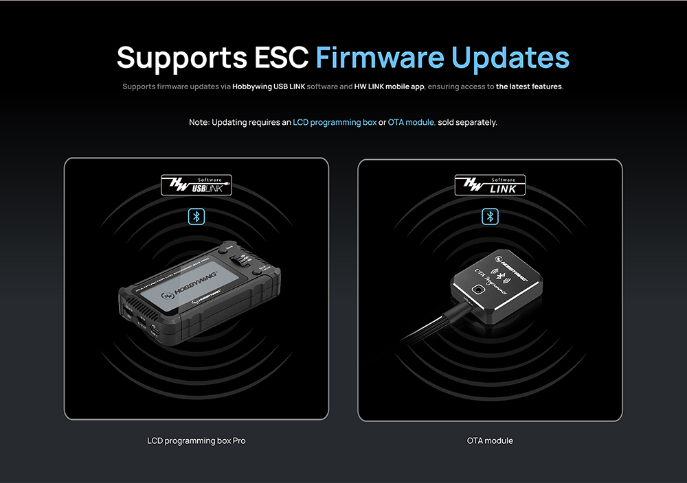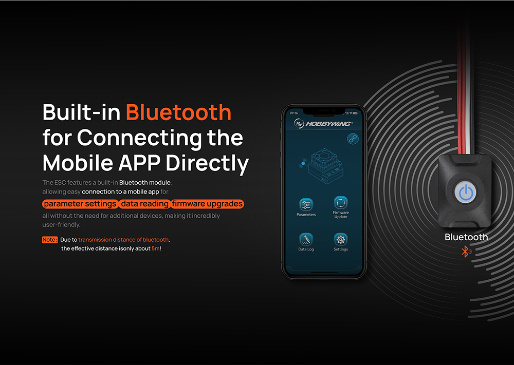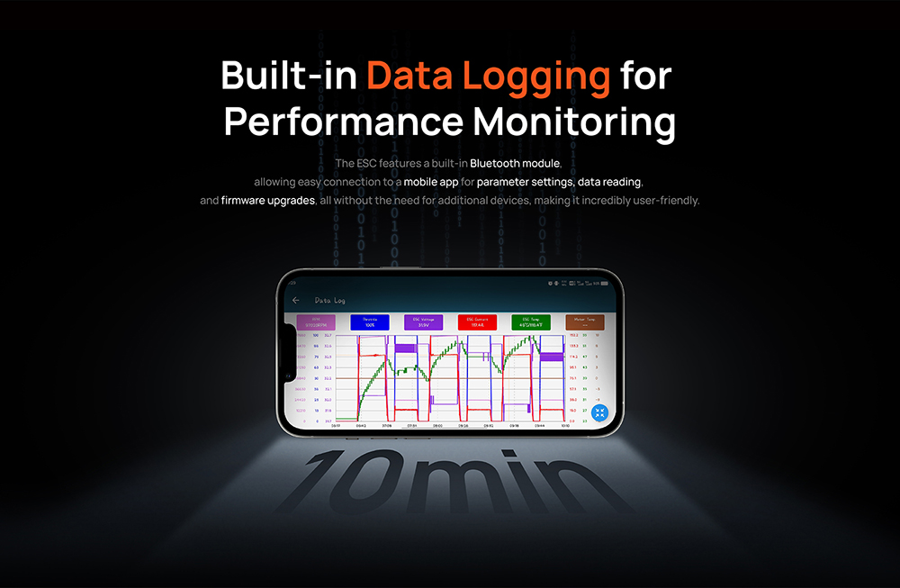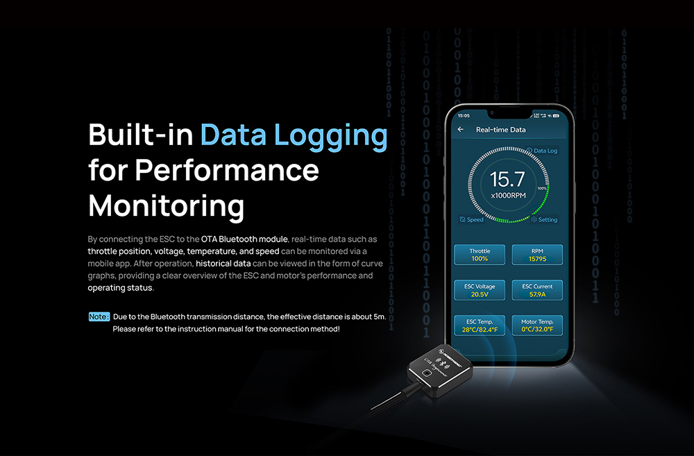 5. By connecting the ESC to the OTA Bluetooth module,Built-in Data Logging for Performance Monitoring.