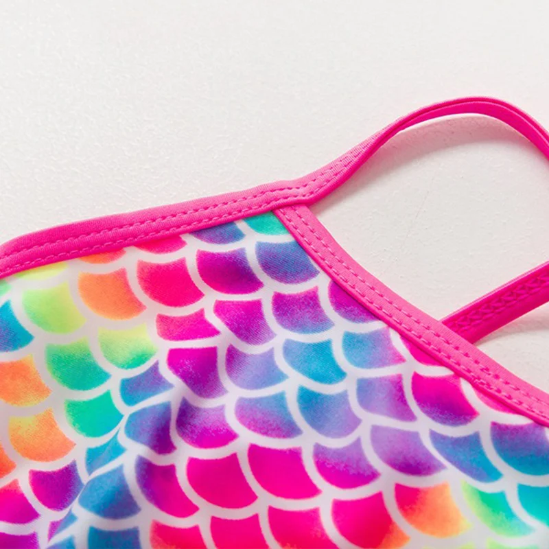 One-piece girls swimsuit, fish scales Designed with a cute ruffle hips.