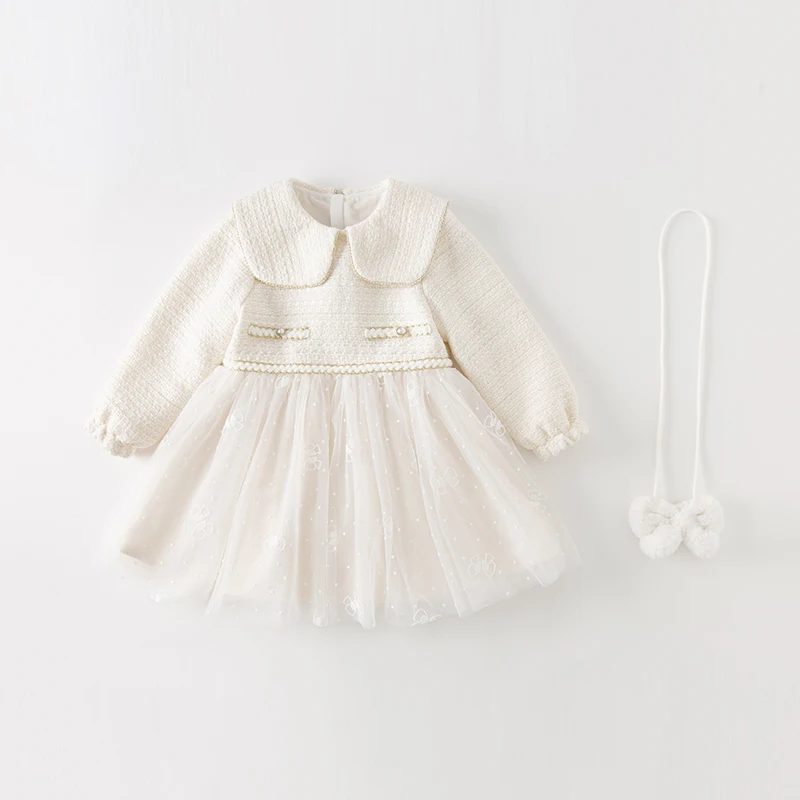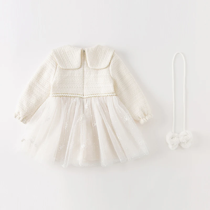 Color: WHITE, Kid Size: 3T - Dave Bella Girl's Dress Children's Autumn Winter Princess Dress Charm Sweet Classy Gentle Fashion Mesh Party DB4237805