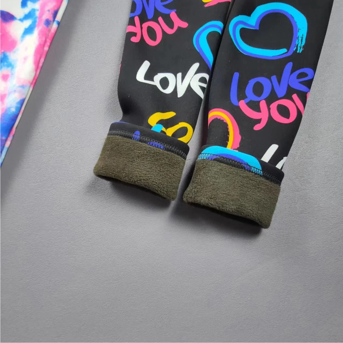 Color: WHITE, Kid Size: 4 - 2-11Y Girls' Pants Autumn and Winter Slim Fit Warm Bottom Pants Thickened Velvet Printed Children's Pants Baby Casual Pants