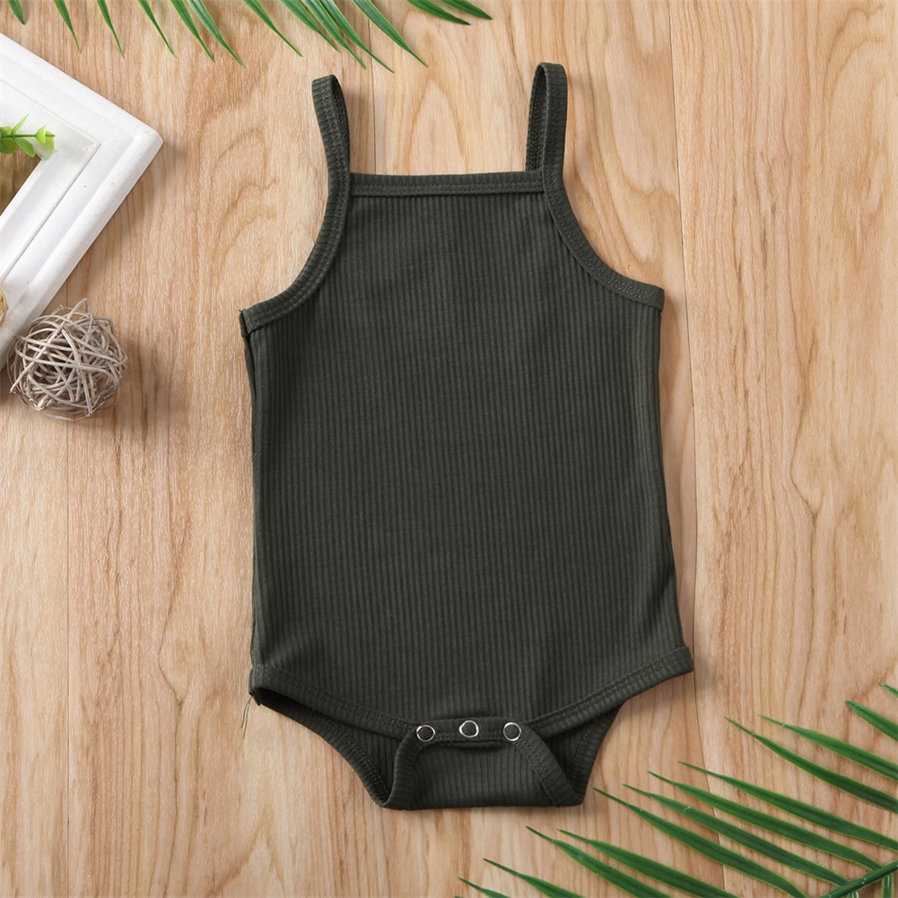 Color: WHITE, Kid Size: 6M - 2020 Infant Baby Square Collar Bodysuits Newborn Baby Boy Girl Sling Romper Bodysuit Jumpsuit Outfit Clothes Set