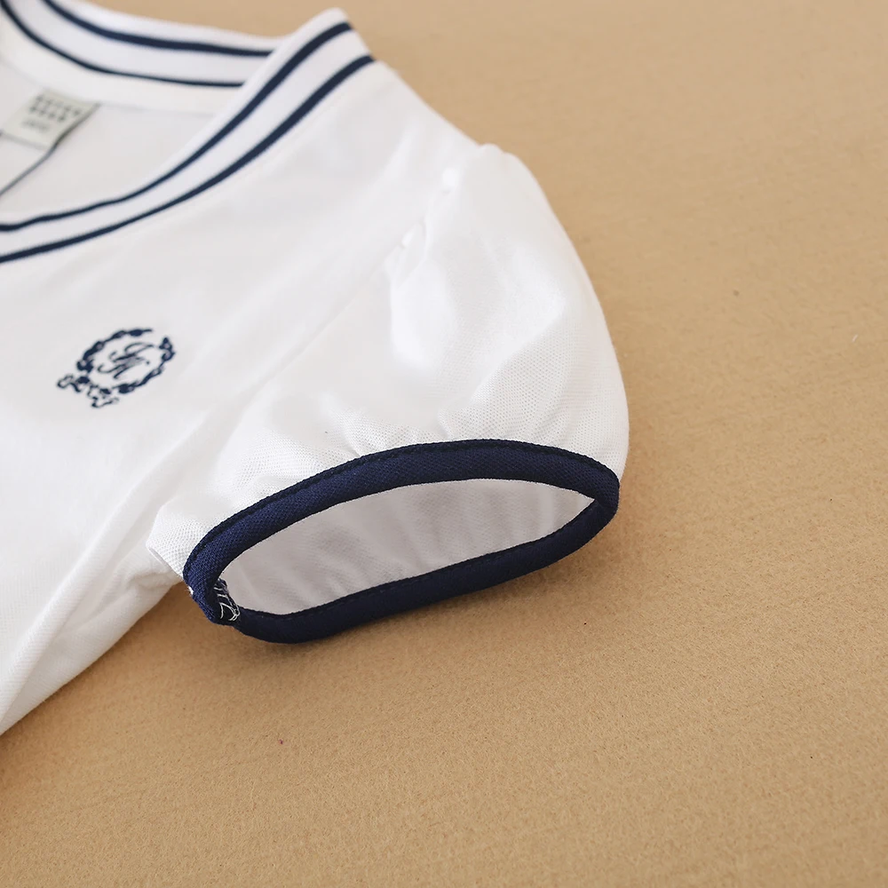 Color: WHITE, Kid US Size: 6 - Girls' White Summer Dress V-Neck Polo Pleated Dress for School 5-12 Years Girls Clothing
