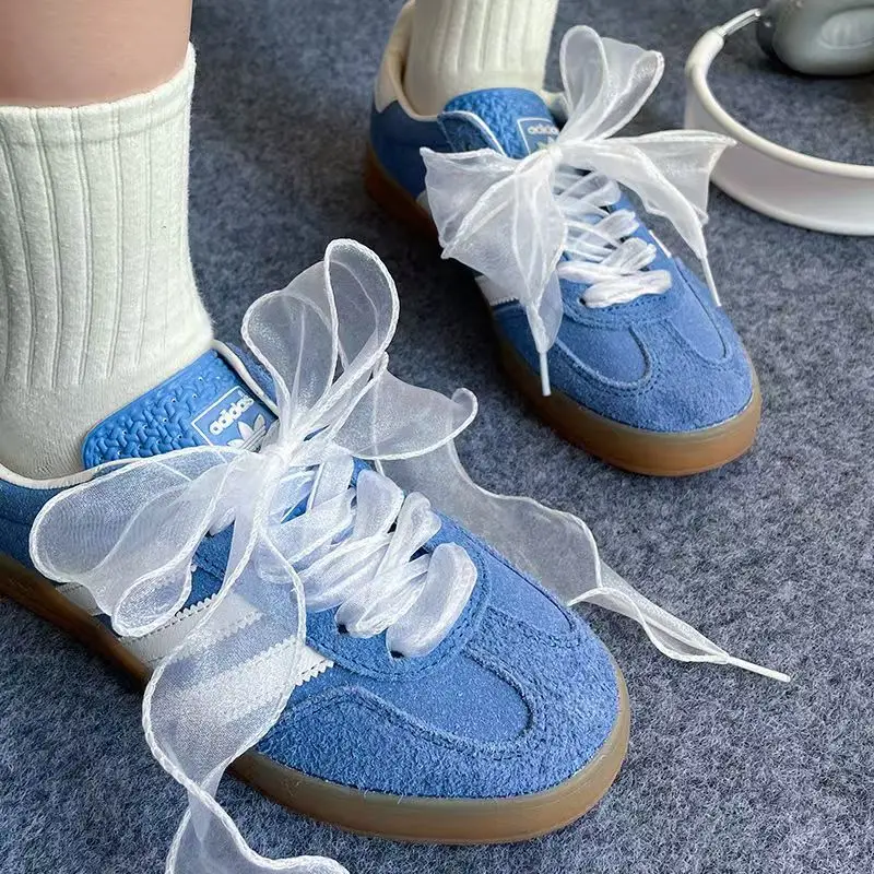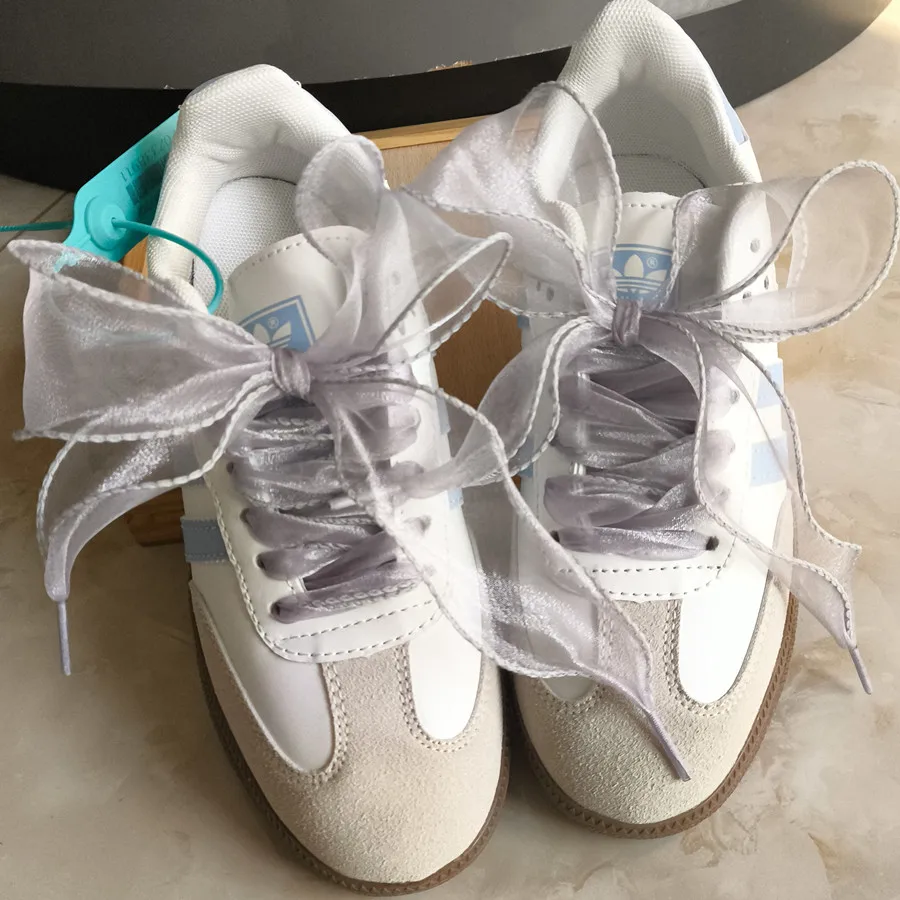4cm Wide Festoon Fishtail Organza Shoelaces Wave Chiffen Yarn Bow Laces Beauty White Casual Sneaker DE Training Shoes Laces