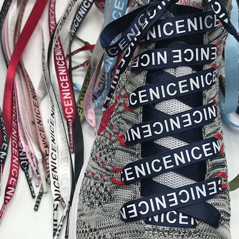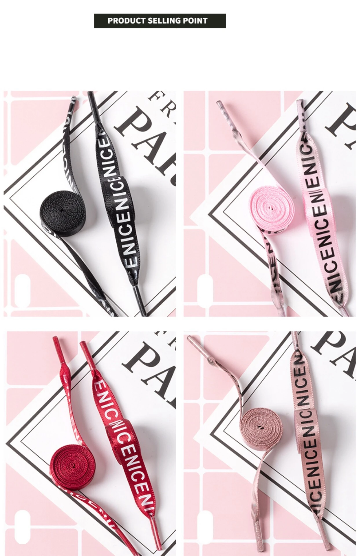 1 Pair Shoelaces Letter Print Flat Shoelaces 1CM Width Satin Silk Ribbon Sneakers Shoes lace Casuals Canvas Shoelace Strings