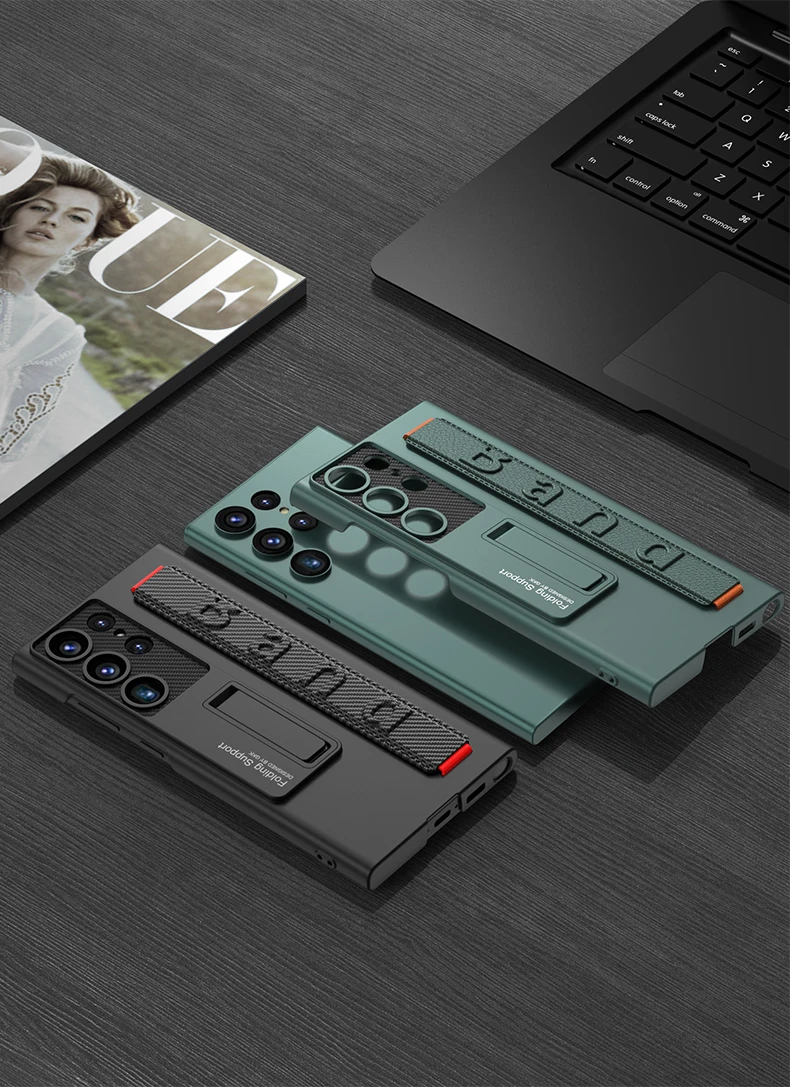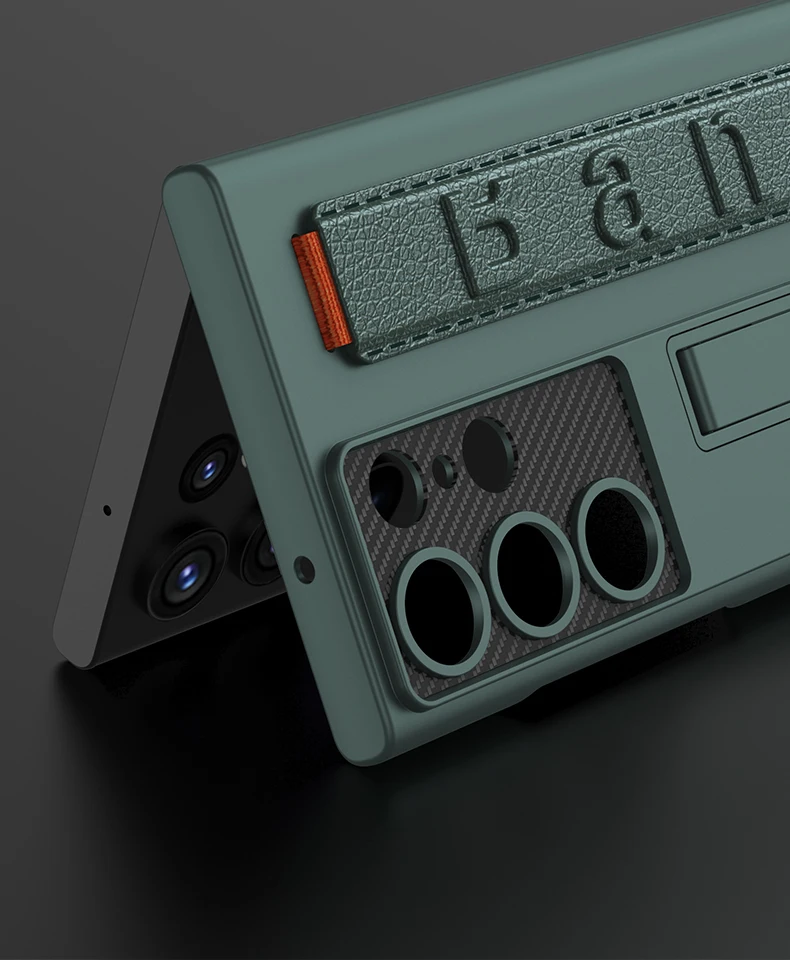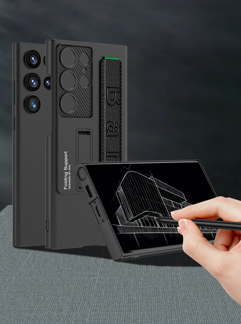 Color: WHITE, Material: ABS - S24 Ultra Wrist Strap Holder Case For Samsung Galaxy S23 Ultra Carbon Fiber Shockproof Armor Camera Protector Kickstand Cover