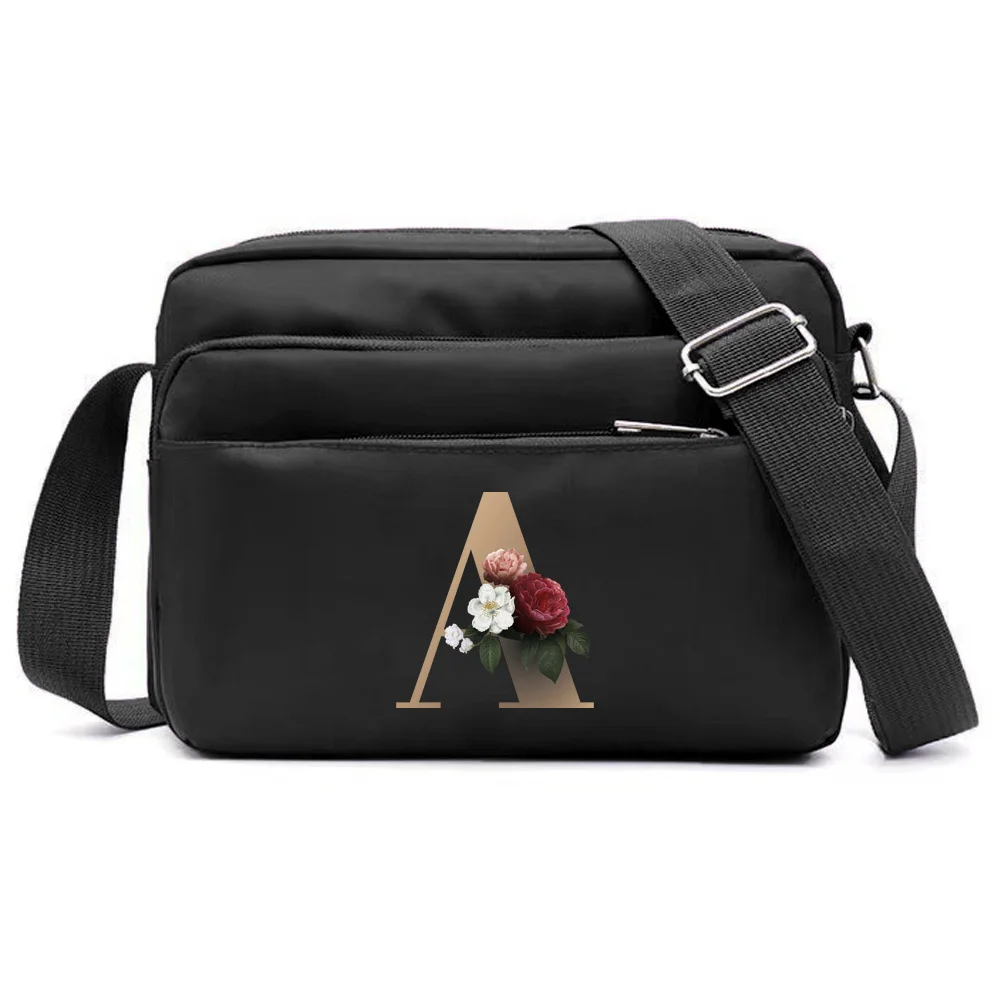 Color: WHITE - New Fashion Multi-layer Travel Leisure Simple Storage Bag Black Gold Letter Series Printing Pattern One Shoulder Crossbody Bag