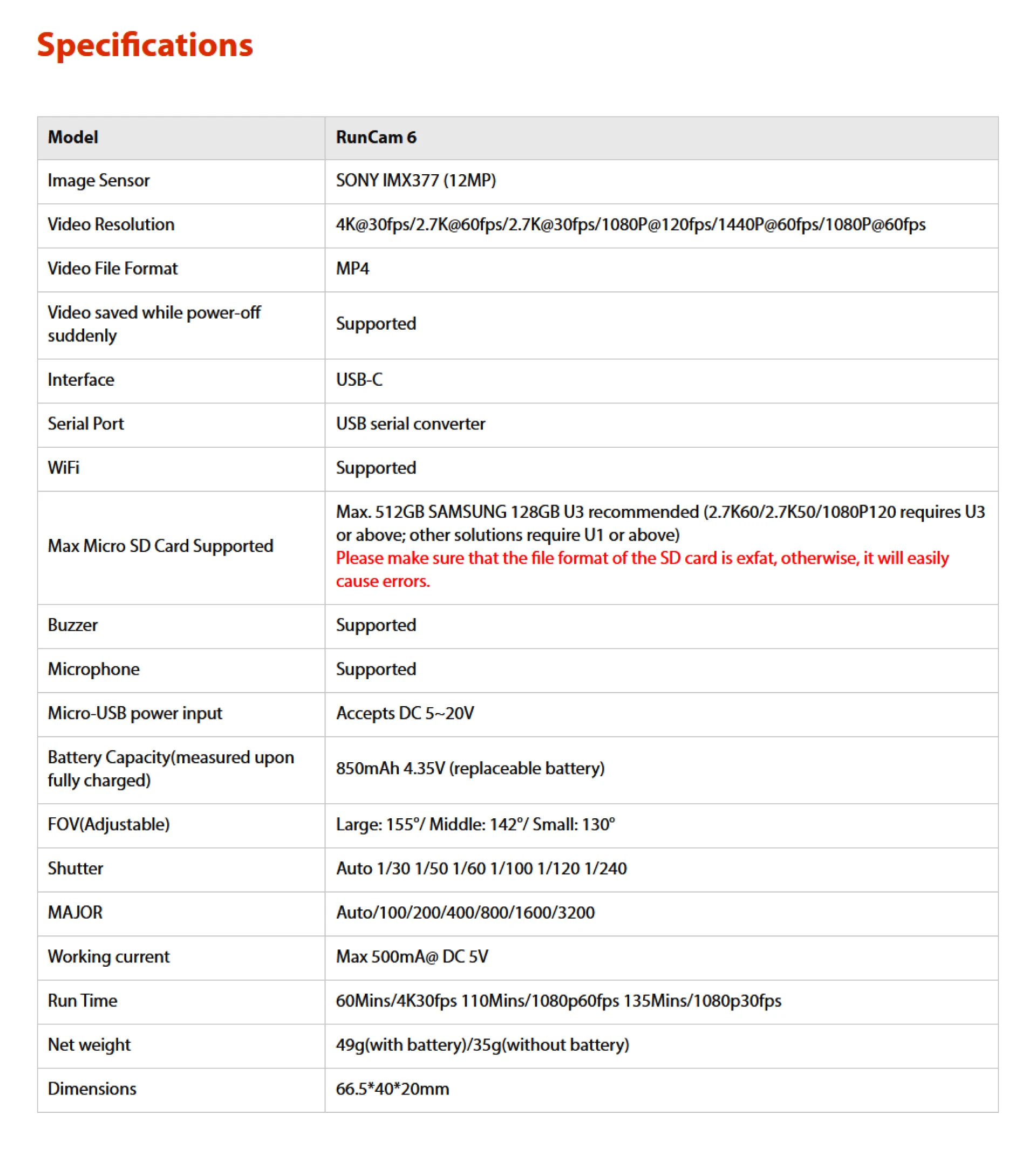 Color: WHITE - RunCam 6 4K 30FPS FPV Action Sport Camera