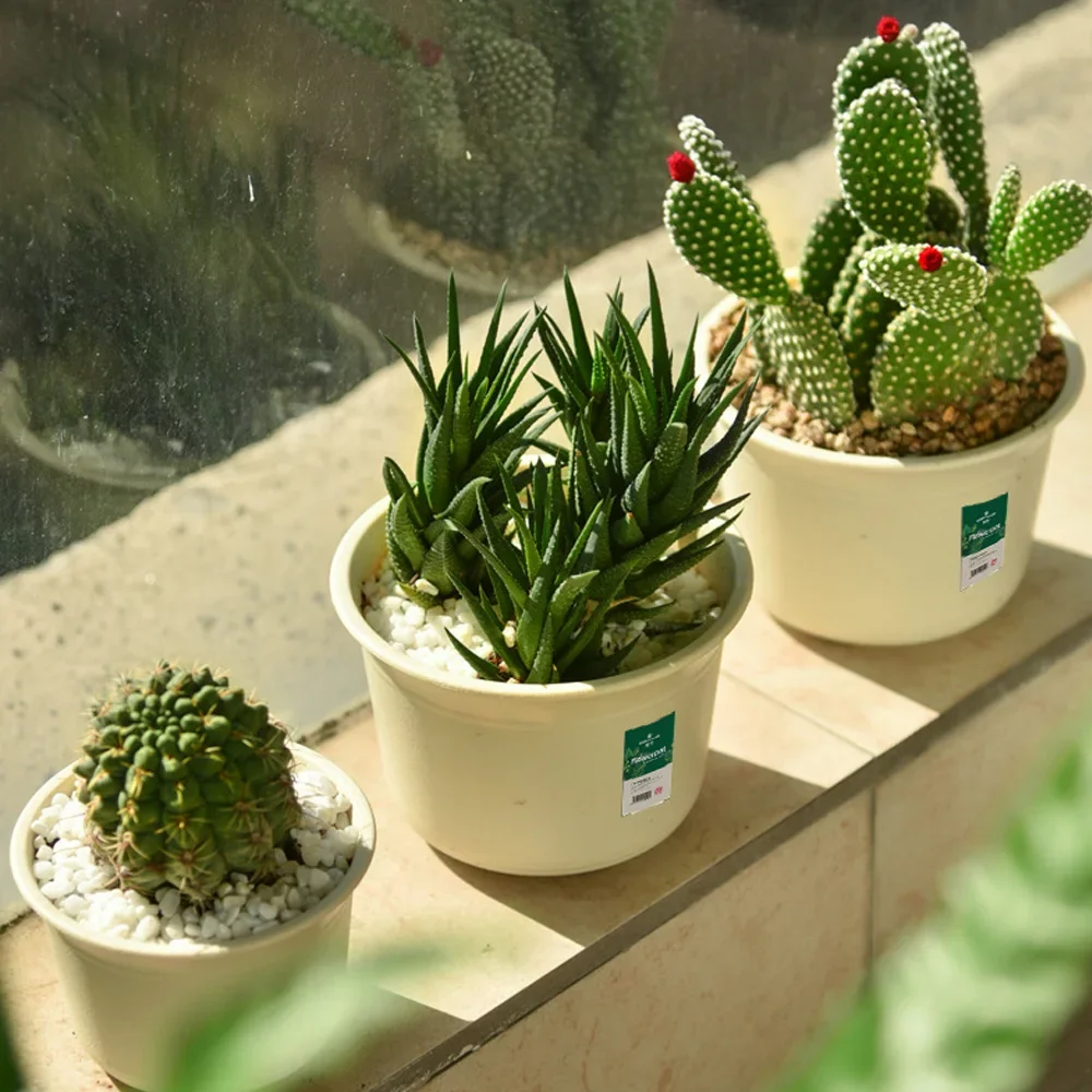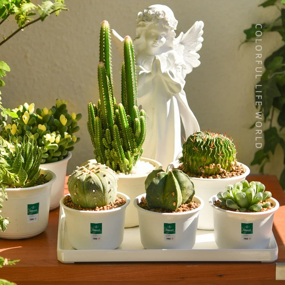 Color: WHITE, Sheet Size: Small - OIMG Plastic Round Thick Imitation Ceramic Household Indoor Planting Fleshy Green Fruit and Vegetable Resin Plastic Flower Pot