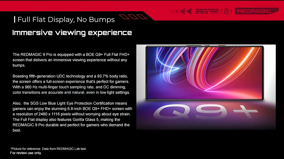 >Screen --- The fifth generation of under screen super competitive full screen, with a refresh rate of 6.8 inches, 2480 * 1116 120Hz,touch sampling rate: Global 960Hz/Instantaneous 2000Hz,screen peak brightness 1600nit,eye protection plan 2160Hz PWM+DC dimming