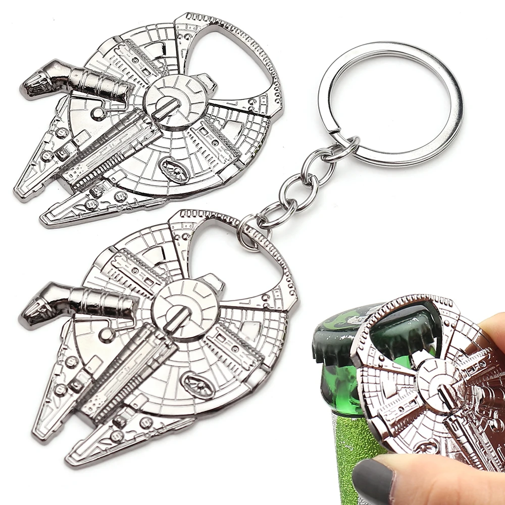Color: WHITE, Ships From: CHINA - Disney Star Wars Keychain Spaceship Darth Vader Robot BB 8 Metal Pendant KeyRings Beer Bottle Opener Movie Jewelry for Men Gifts