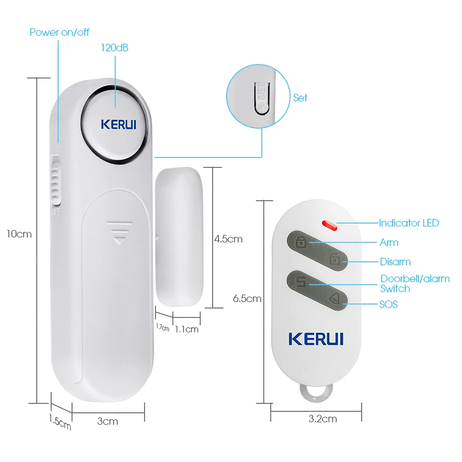 Color: WHITE, Ships From: CHINA - KERUI Wireless Door/Windows Sensor Alarm 300ft 120dB Anti-Theft Smart Remote Control For Kids Cabinet Safety Home Security